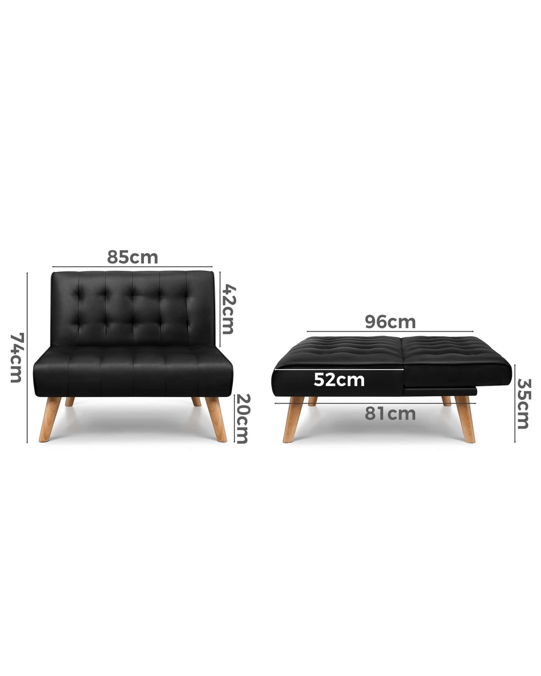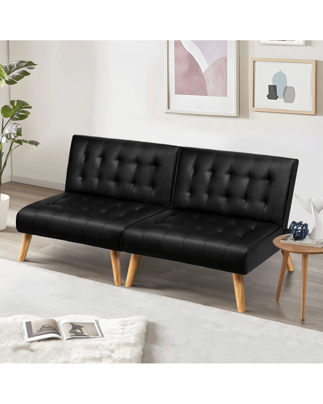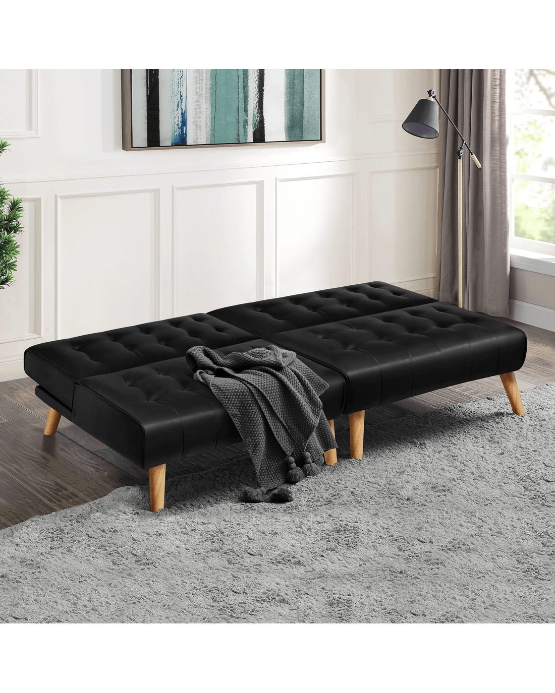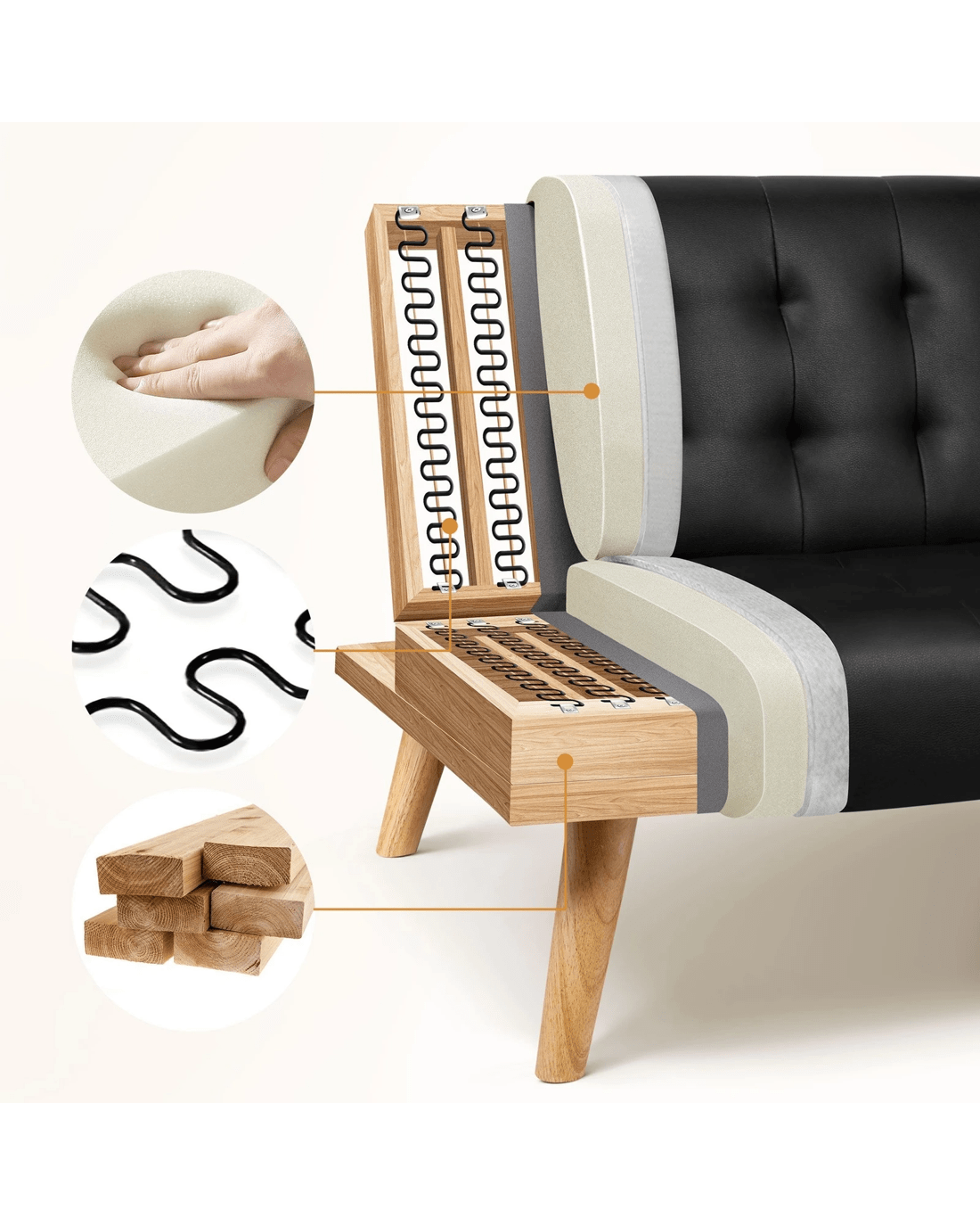 Meticulous craftsmanship - Upholstered in premium PU leather, the seat and backrest are richly padded with high-resilience foam, providing a supportive and plush seating experience. Built from engineered wood frame and 4 sturdy wooden legs, the sofa bed not only balances durability and stylish for long-term Use - also boasts a high capacity of up to 160kg for strong stability.