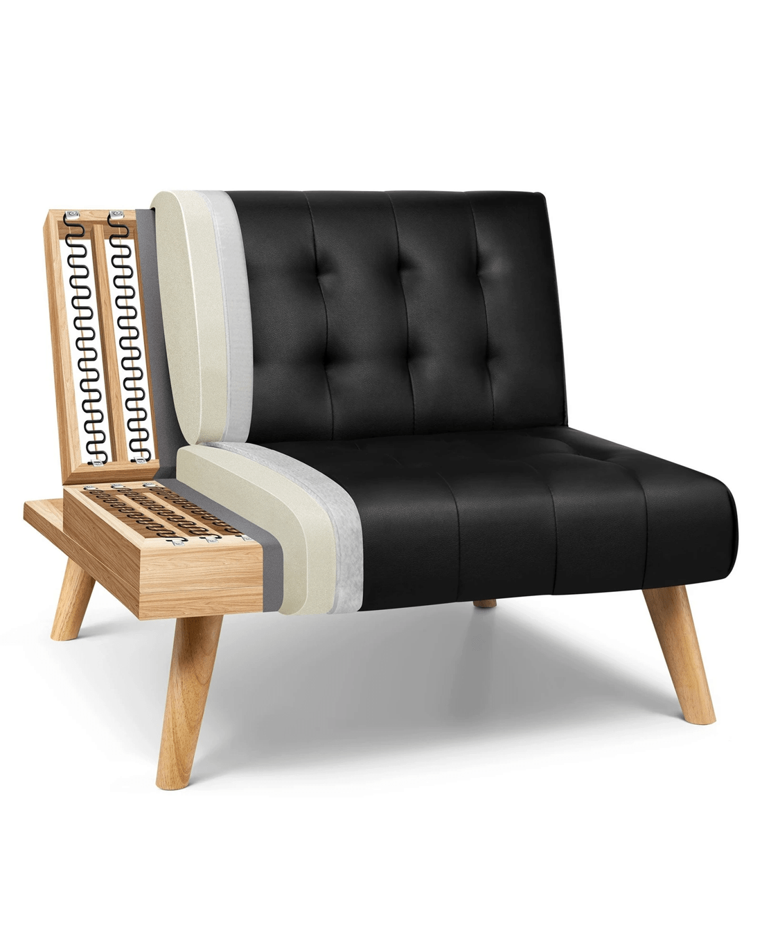 * Seat material: PU leather, high density foam, metal springs and wooden frame