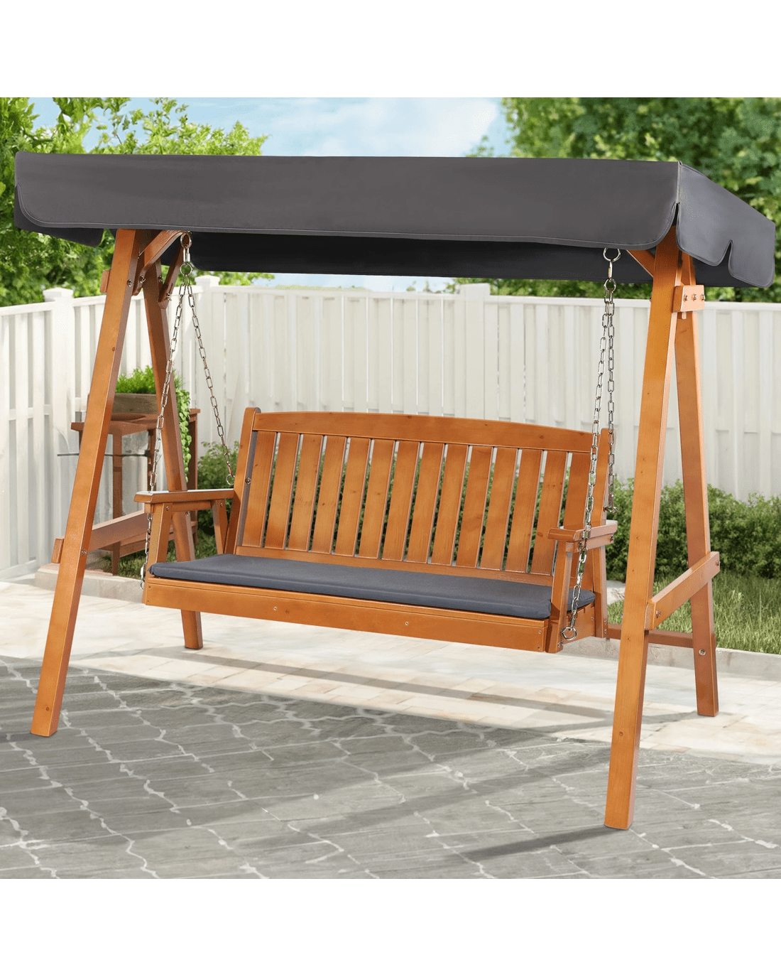 Alfordson Swing Chair Outdoor Furniture Wooden Garden Patio Bench Canopy Teak XL - Orange
