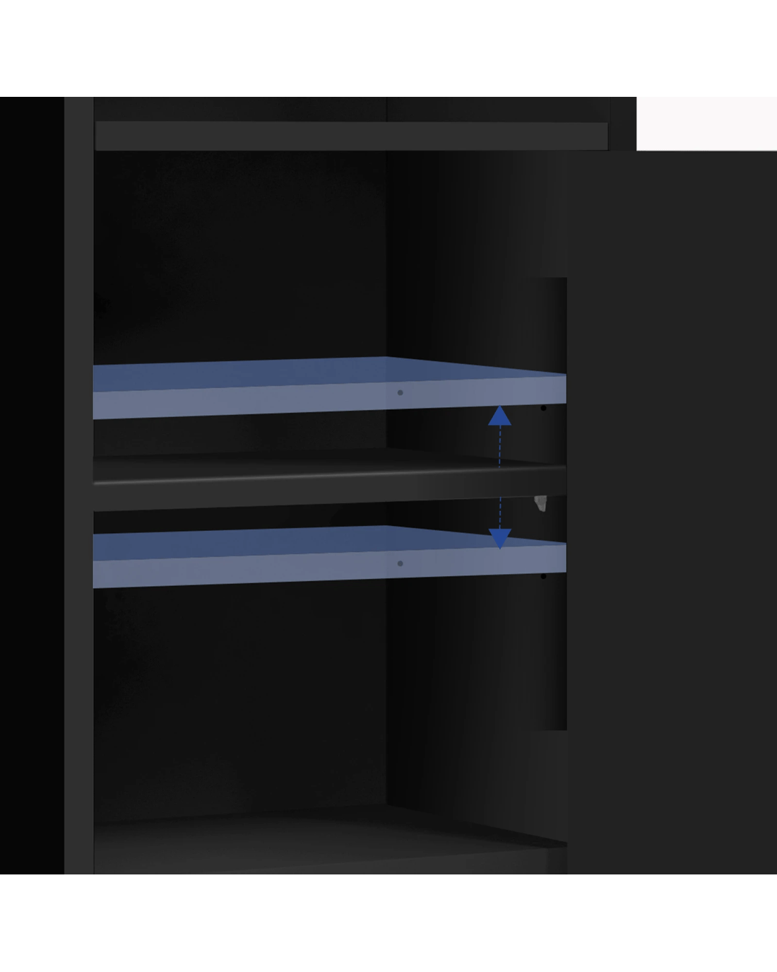 * 6 shelves behind the doors & 2 middle shelves in open compartments