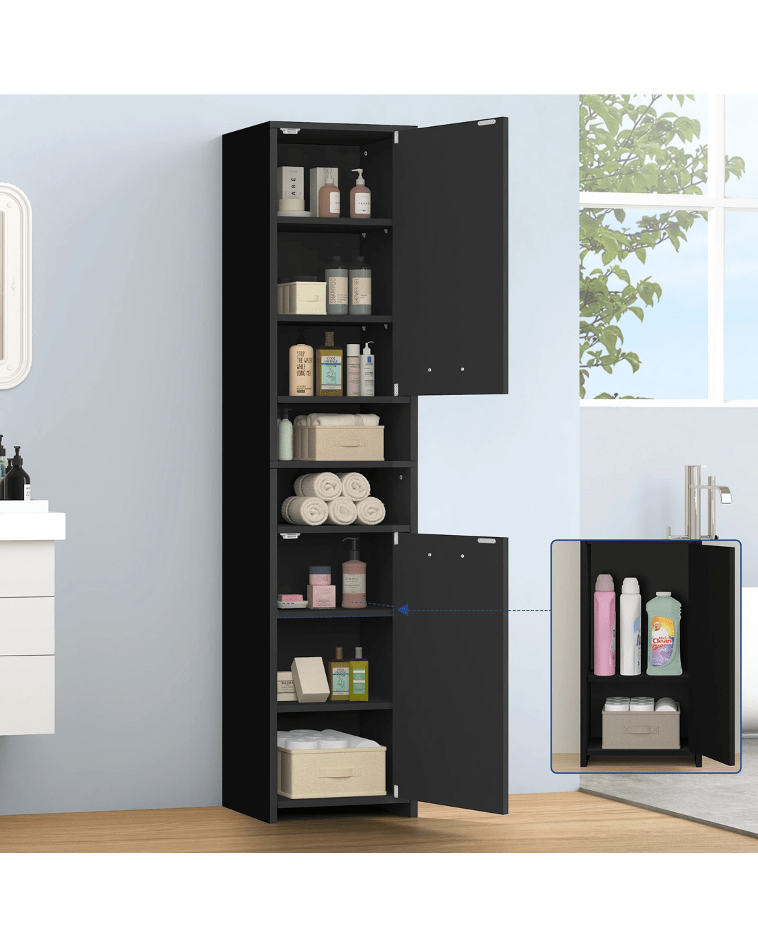 Combines timeless clean design with modern functionality, this tall cabinet is easy to place in any room, adding more glamour to any space while helping maximize the storage space. It is thoughtfully designed with 6 shelving compartments behind doors so that you can designate areas for different items and those items you store away inside won't gather dust, while 2 open shelves in the middle for quick access of your daily essentials with ease.
