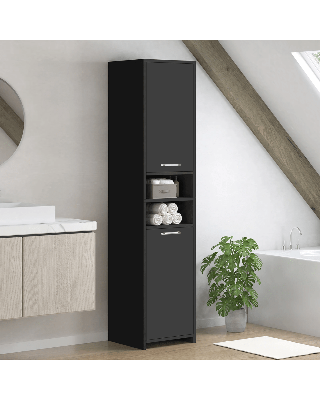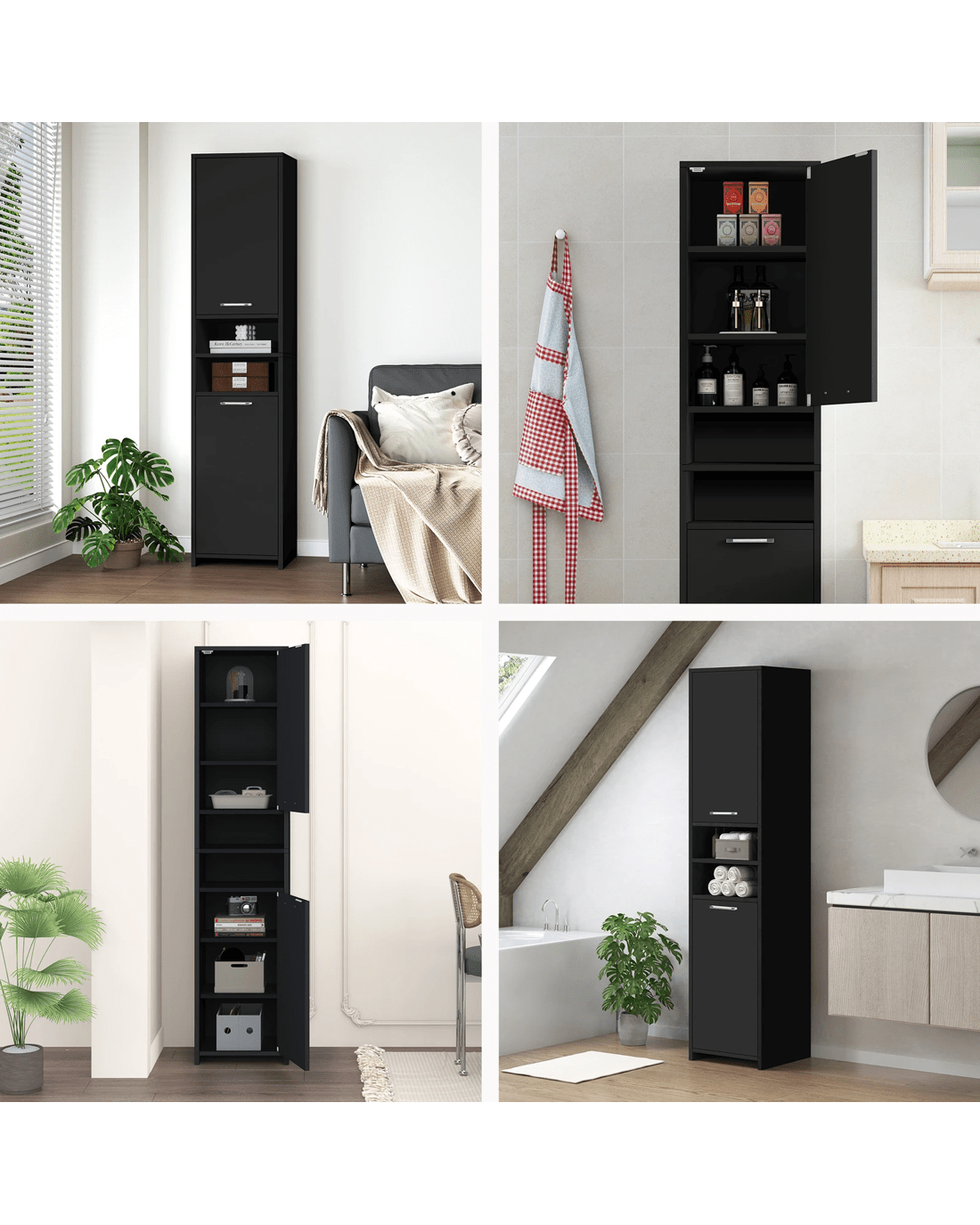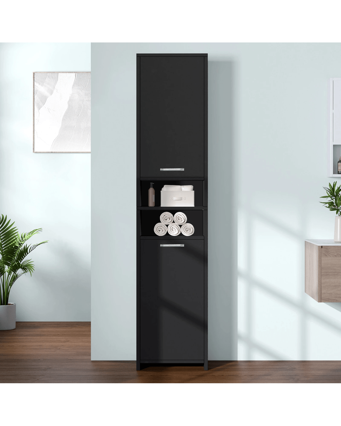 Sold by Aussie Union GroupAlfordson Tall Cabinet Bathroom Storage Slim Cupboard - Black
