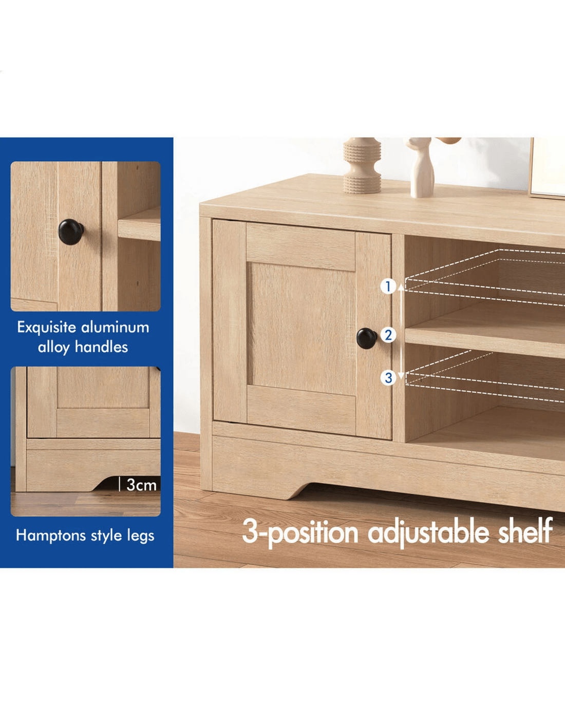 Alfordson TV Cabinet Entertainment Unit Stand 120cm Hamptons Storage - Wood
