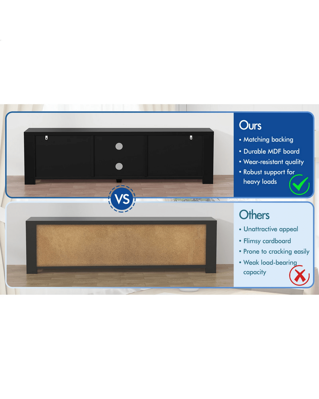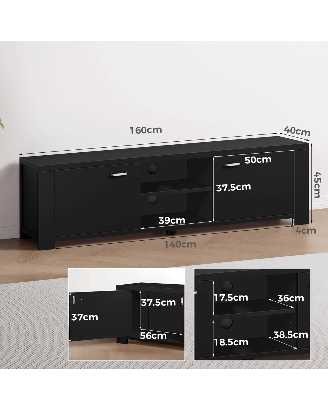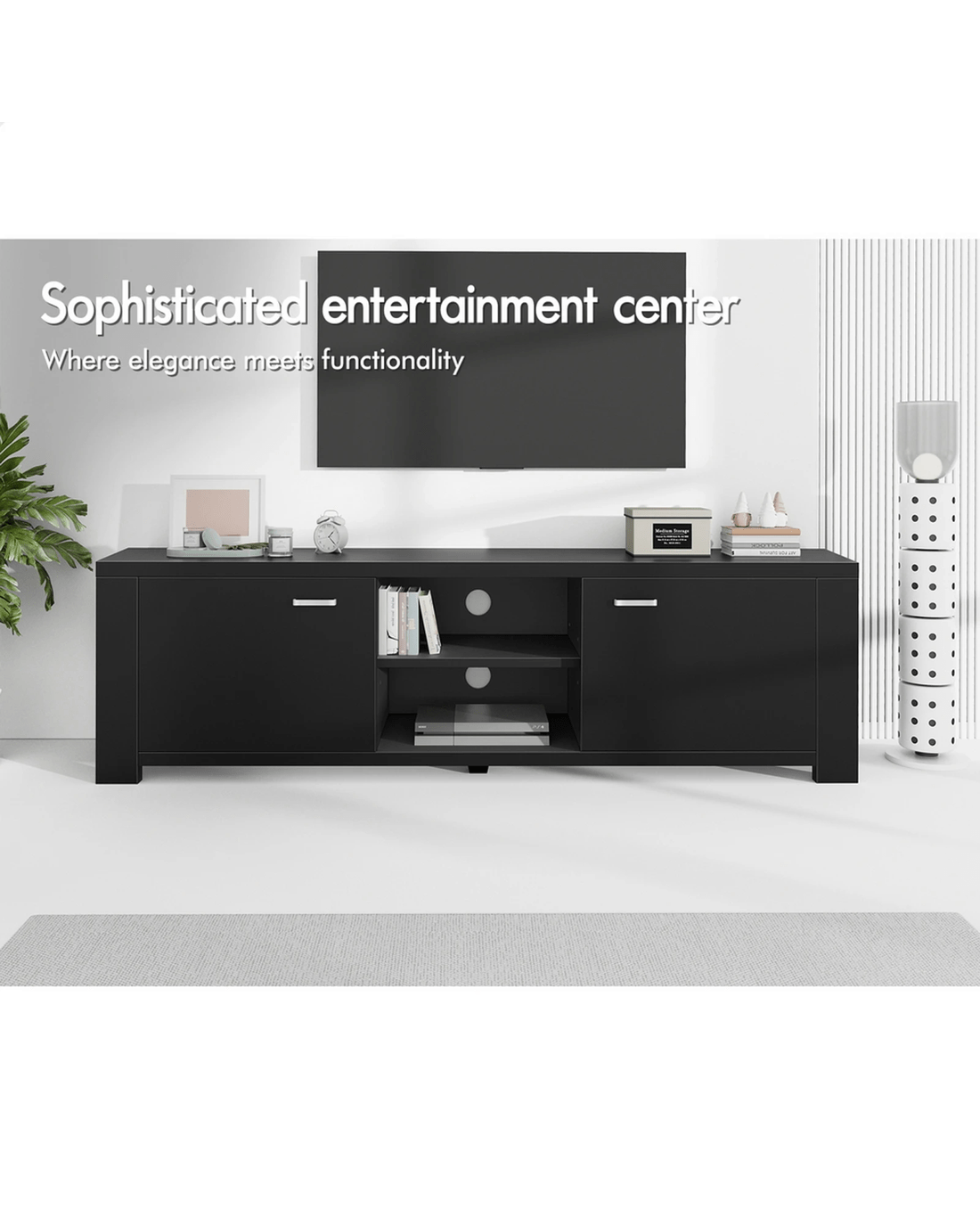 Alfordson TV Cabinet Entertainment Unit Stand Storage Shelf 160cm - Black