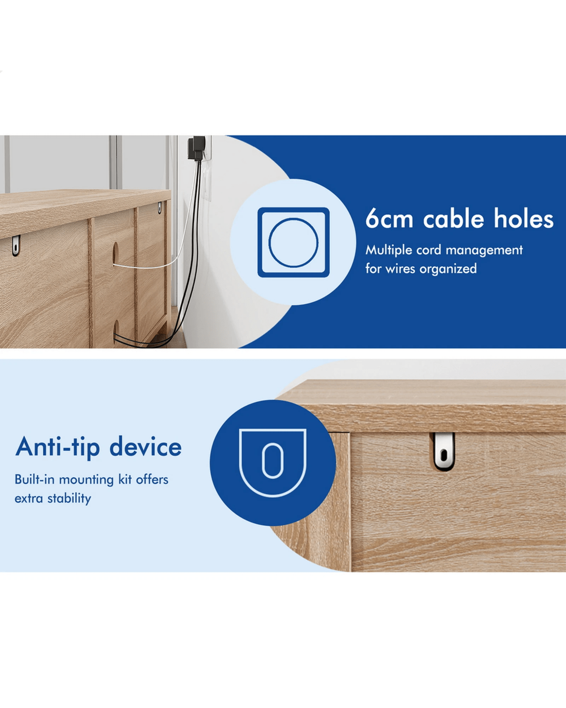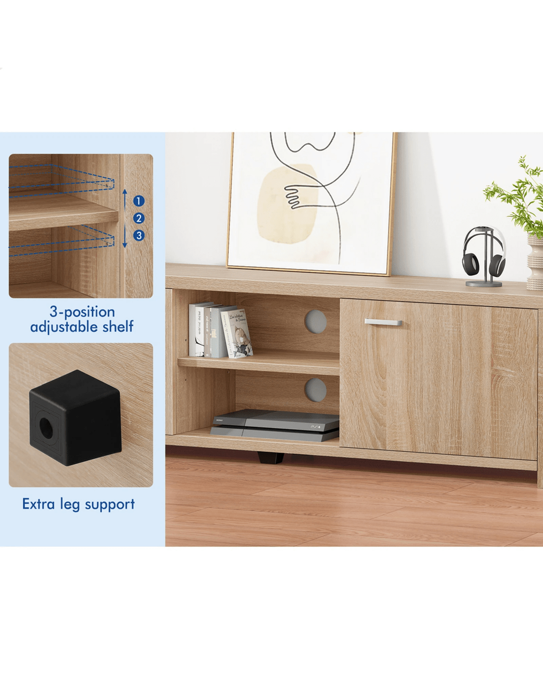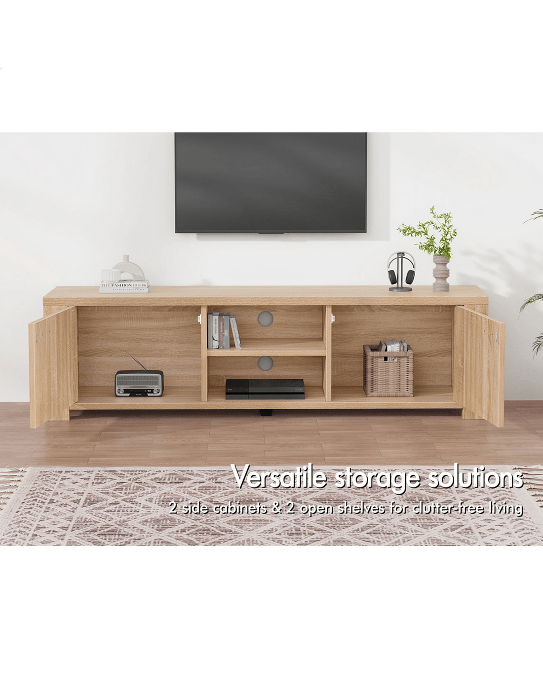Reliable quality - Made of superior E1 grade and 15mm thick particle board, our entertainment unit is durable and resistant to scratches. Instead of flimsy paper finish, it is well made with smooth melamine finish which is easy to maintain and long lasting. Supported by sturdy legs, it ensures strong stability and offers ample space for efficient and effortless cleaning.