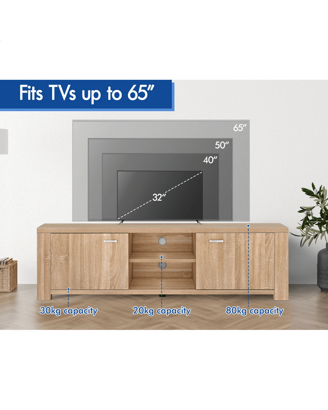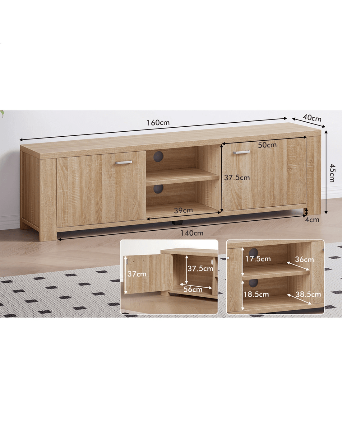 Alfordson TV Cabinet Entertainment Unit Stand Storage Shelf 160cm - Wood