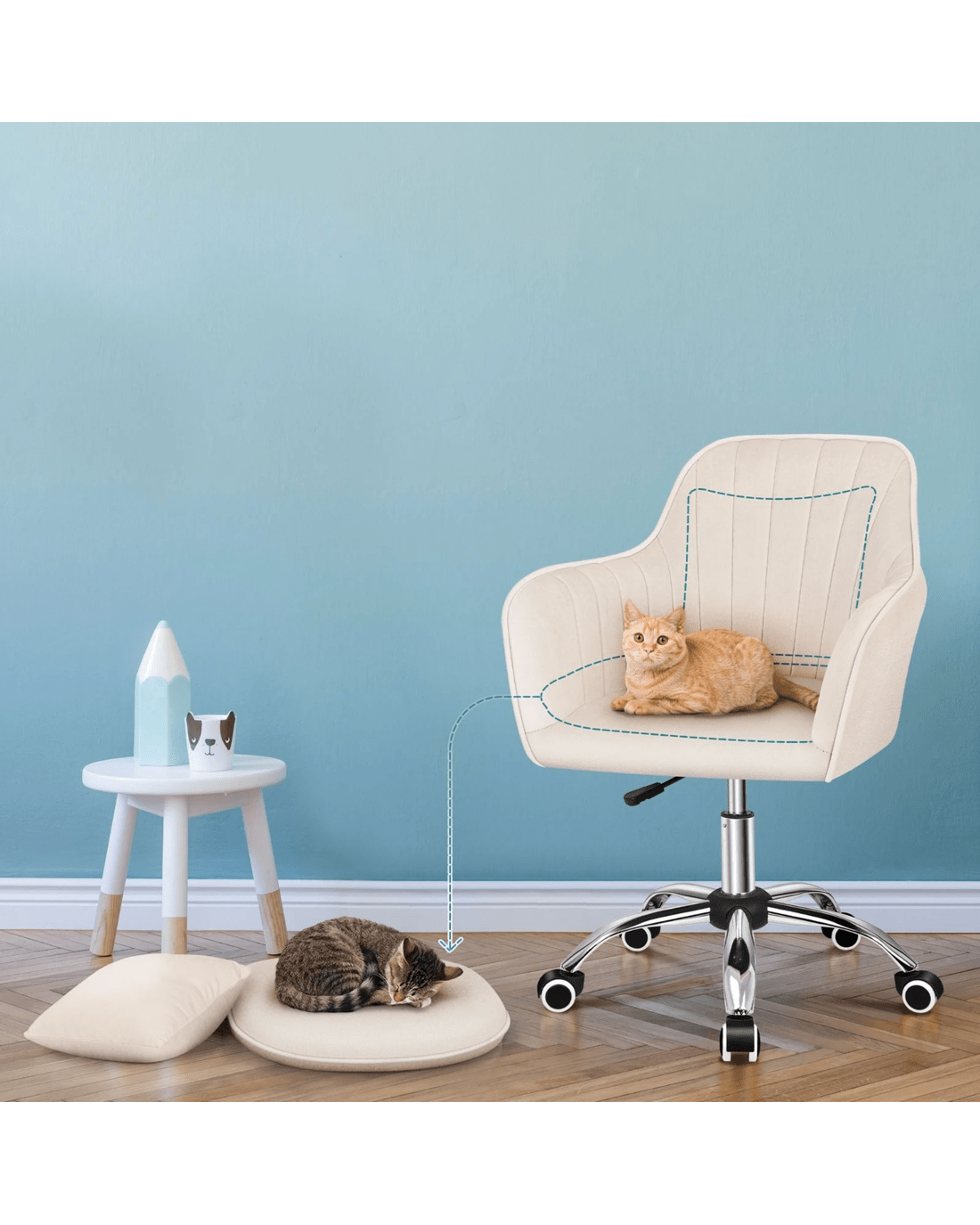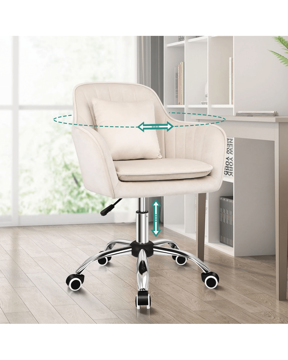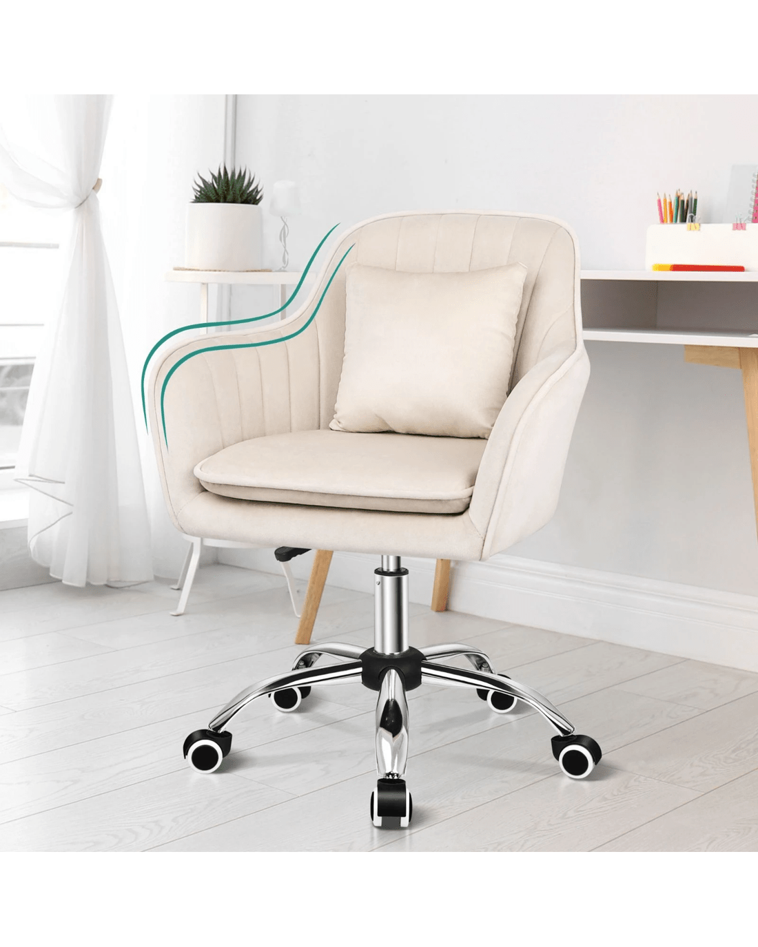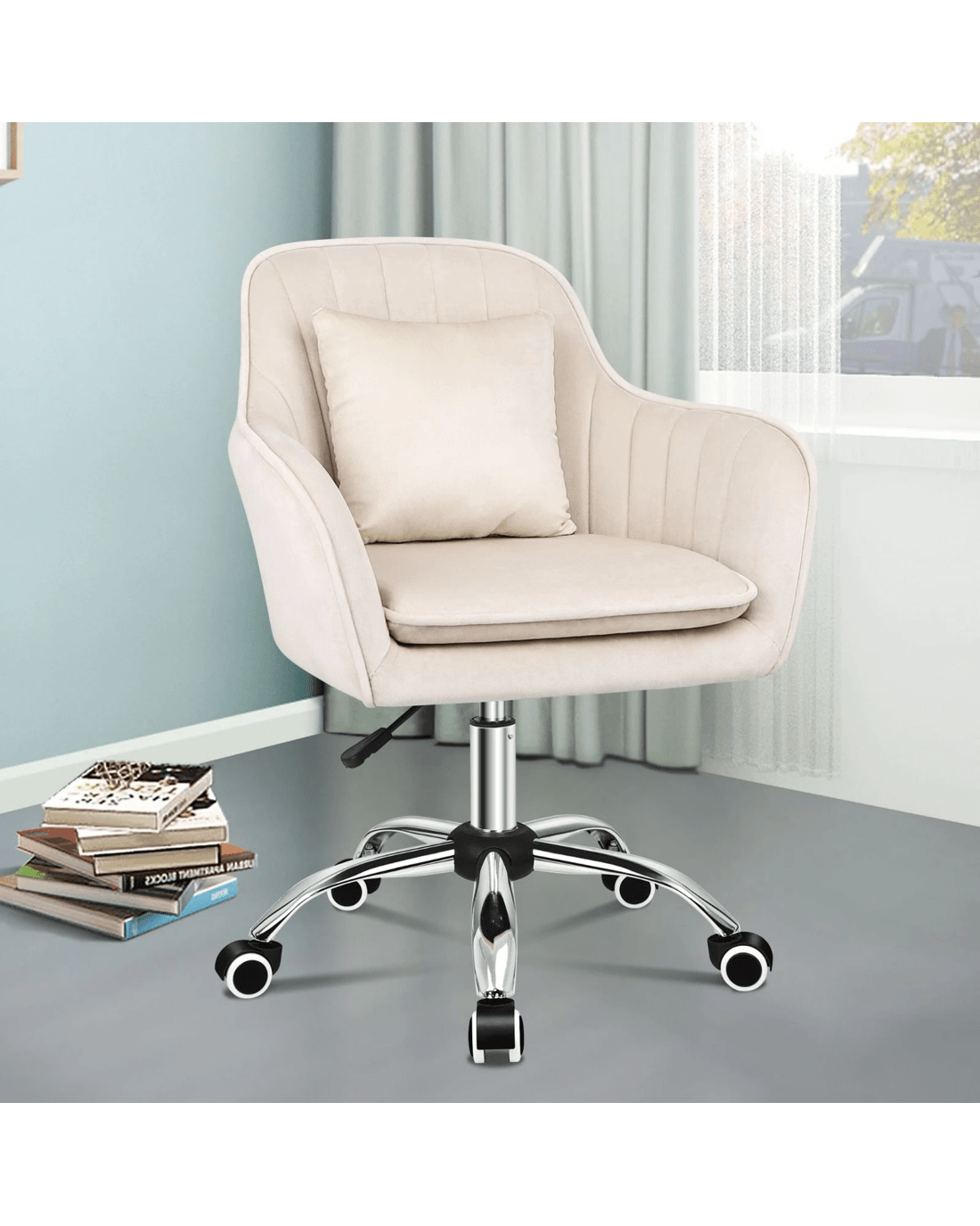 Alfordson Velvet Office Chair Computer Swivel Armchair Work Adult Kids - Beige