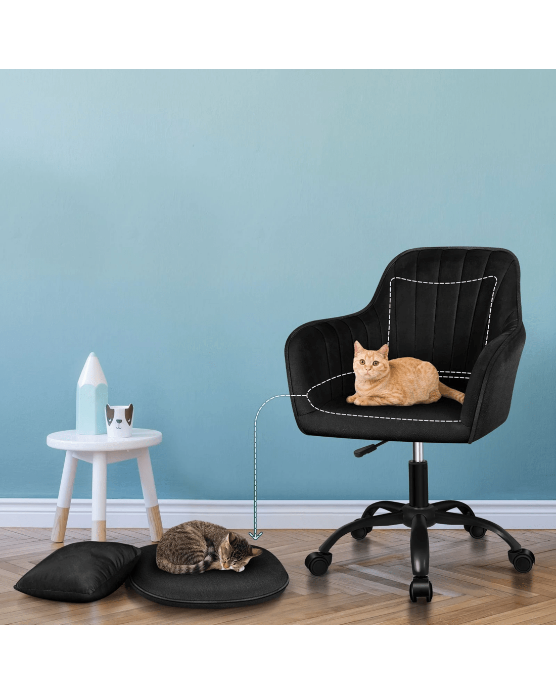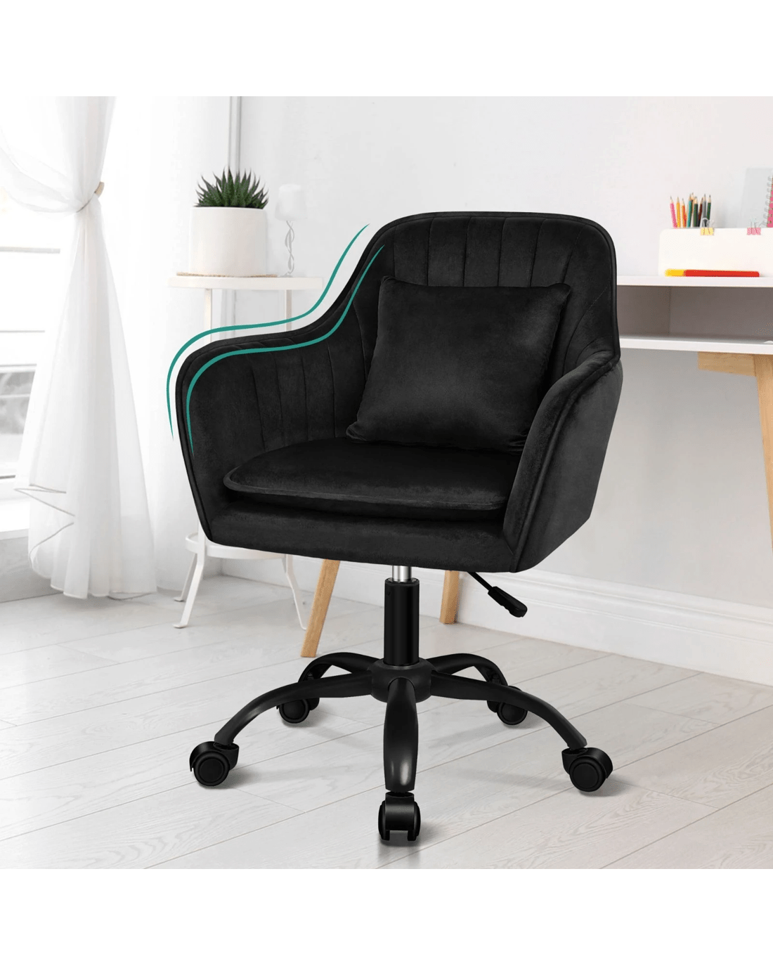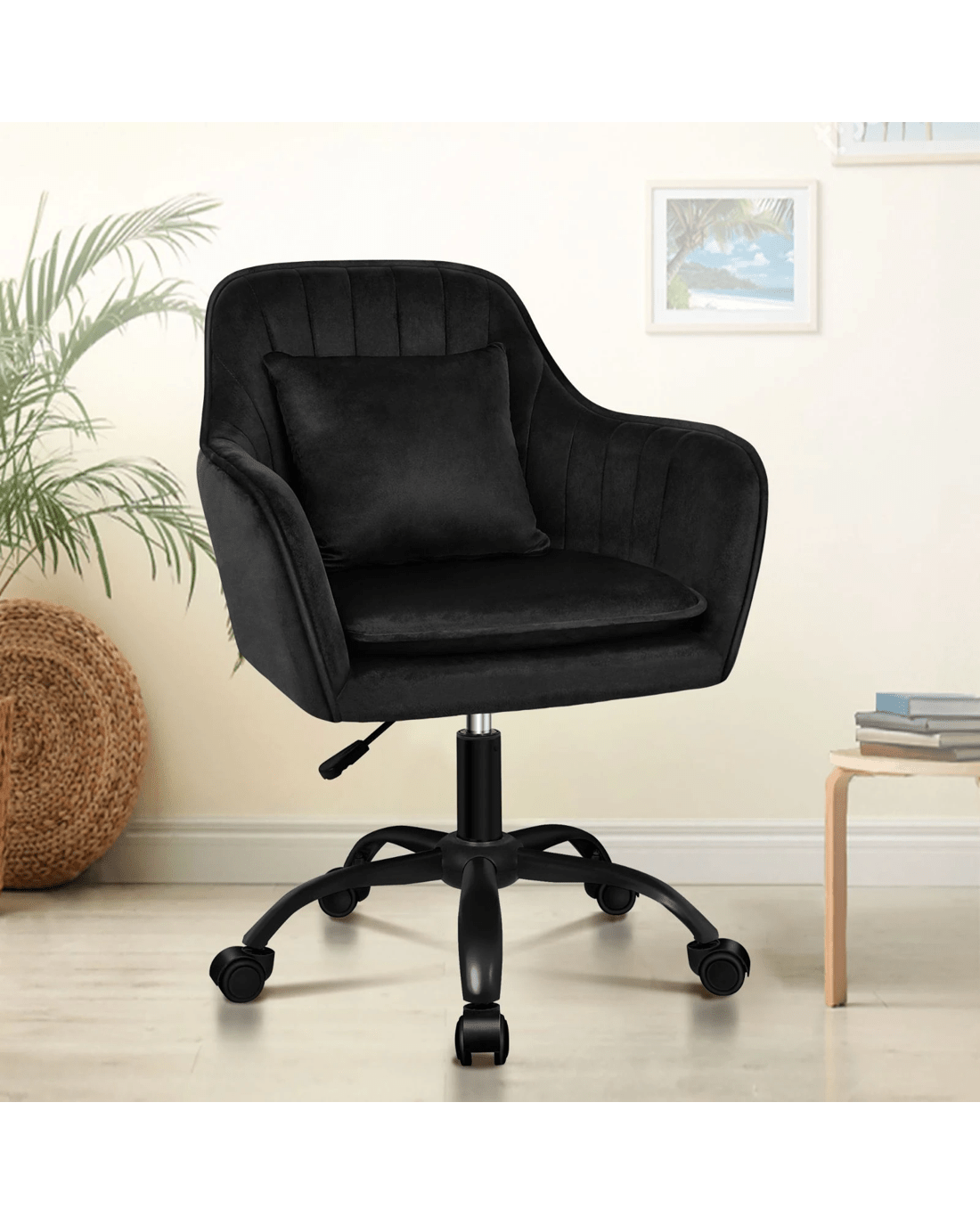 Alfordson Velvet Office Chair Fabric Armchair Computer Swivel Adult Kids - Black