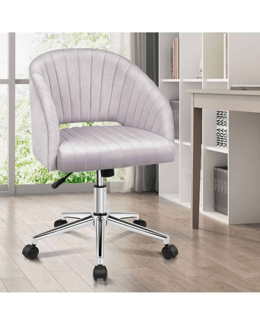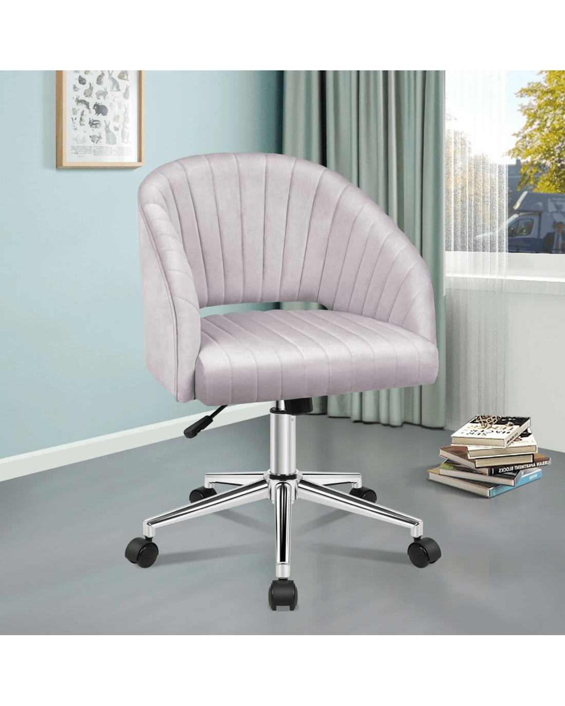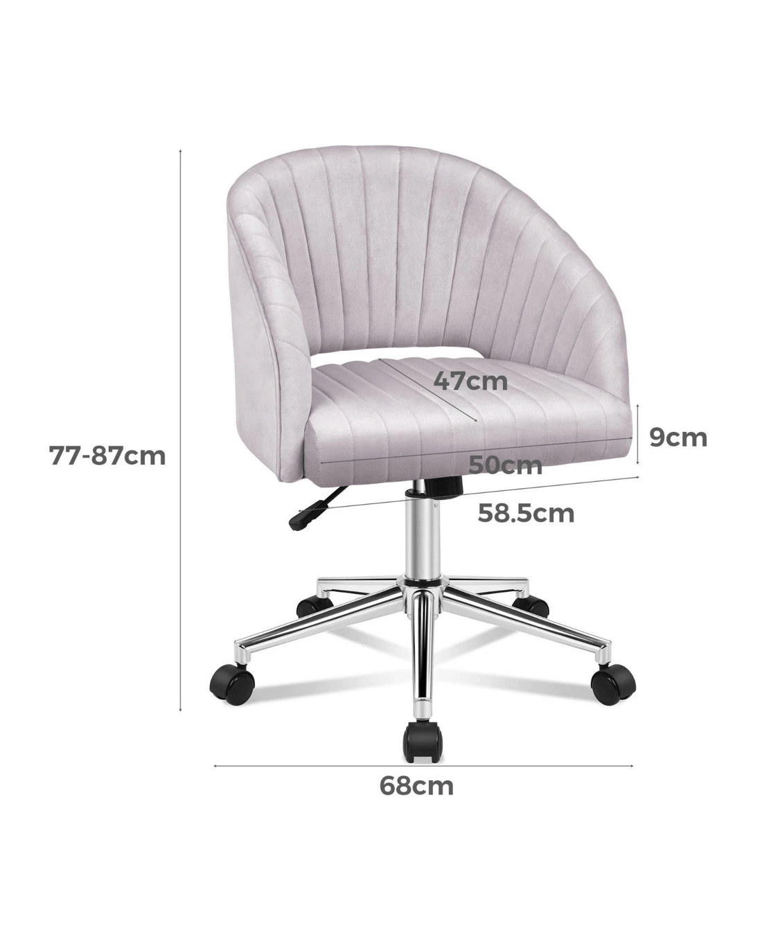 Alfordson Velvet Office Chair Swivel Armchair Work Seat Adult Kids - Grey