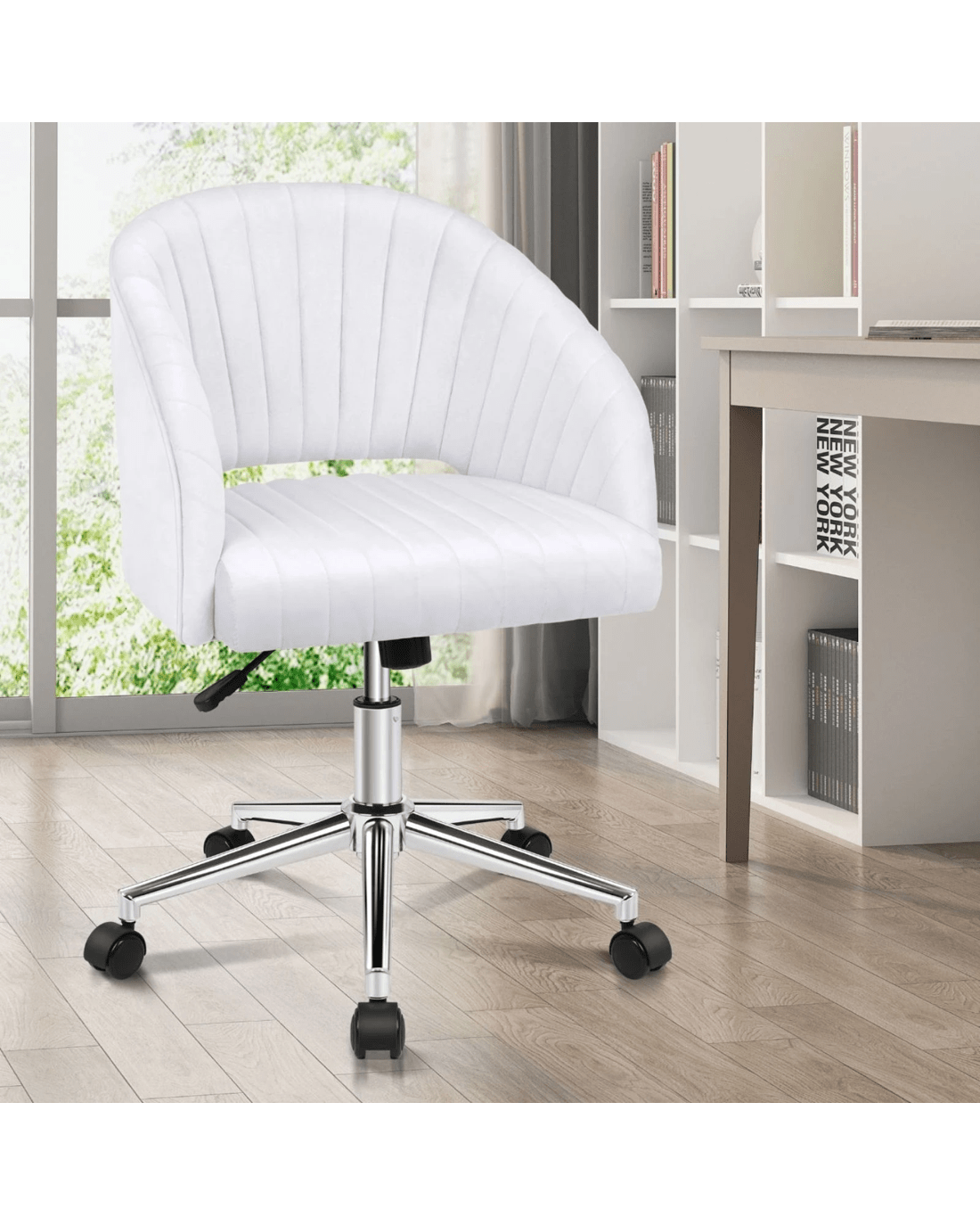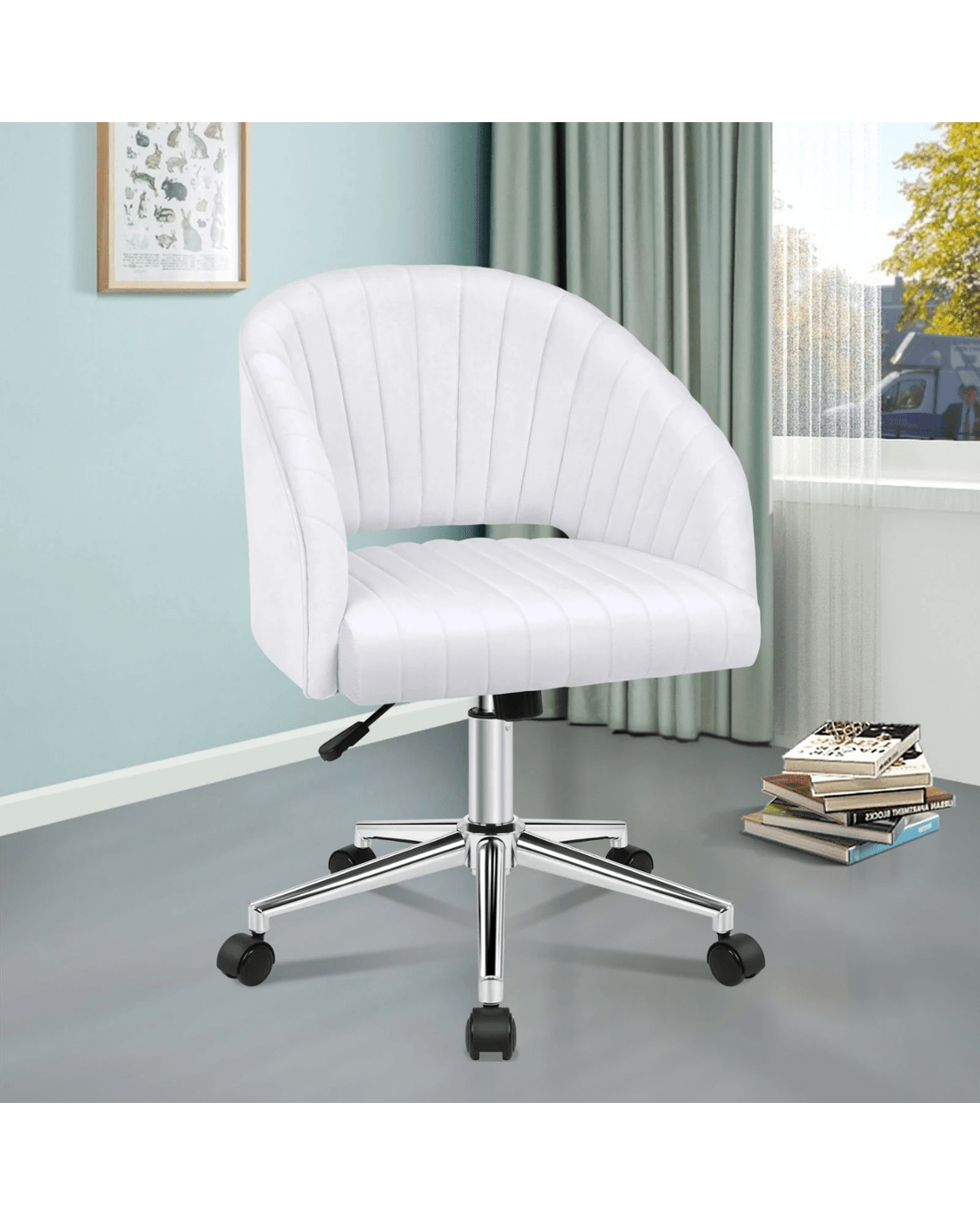 Alfordson Velvet Office Chair Swivel Armchair Work Study Seat Adult Kids - White