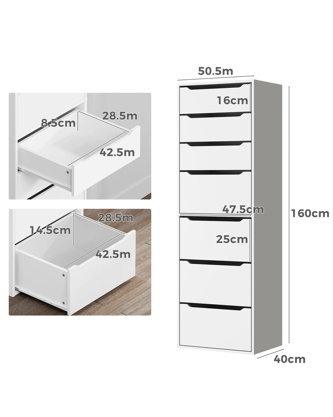 Ample Storage - As a well-organized wardrobe, it provides sufficient space with 7 ample drawers to keep your room tidy and free of clutter. Three drawers at the top are ideal for undergarments, sock or other accessories that are easy accessible, while the other four bottom drawers with greater capacity can store your blankets, sweaters and so on. The handle-free design is not only convenient but also keeps drawer fronts clean and simple.