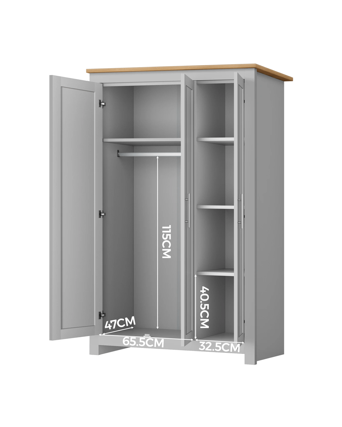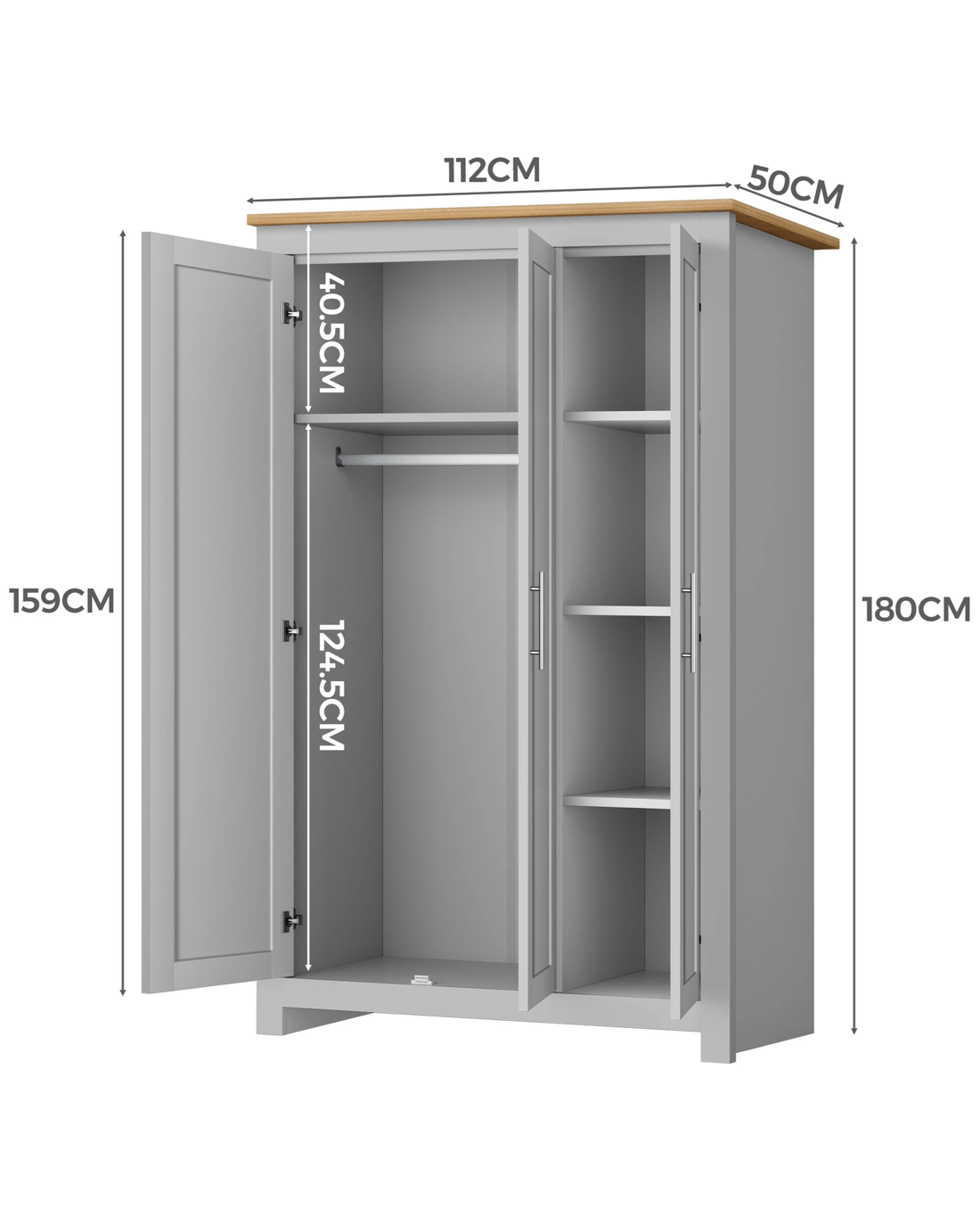 Ample Storage - As a well-organized wardrobe, it provides sufficient space with a large 3-door cabinet with multiple shelves to keep your room tidy and free of clutter. Featuring a hanging rail, the wardrobe is perfectly convenient for storing longer clothes, like dresses, coats and shirts. Featuring adjustable and removable shelves on the right side, it is not only ideal for your undergarments, socks and folded garments, but also allows for a fully customizable storage configuration, catering to a wide range of personal belongings and organizational preferences.