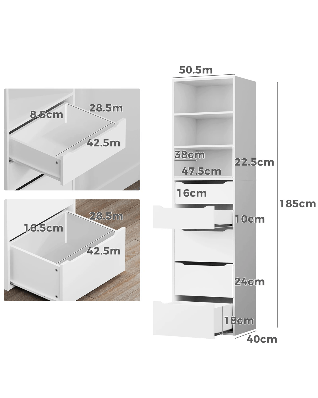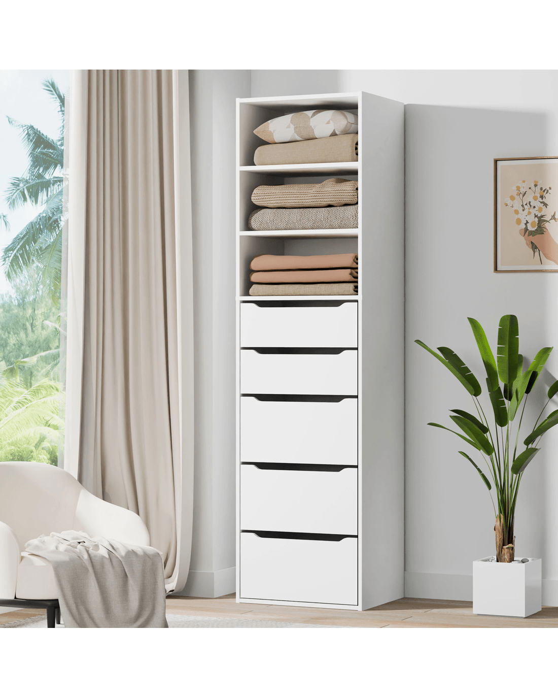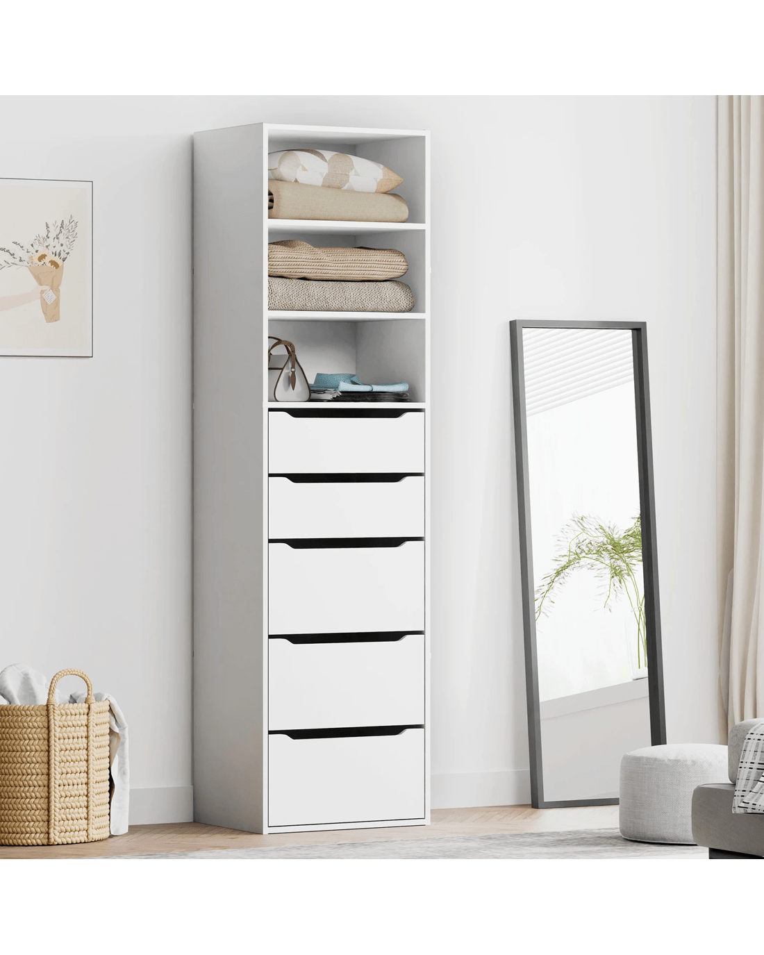 Alfordson Wardrobe Clothes Storage Cabinet Closet Organizer 5 Drawers - White