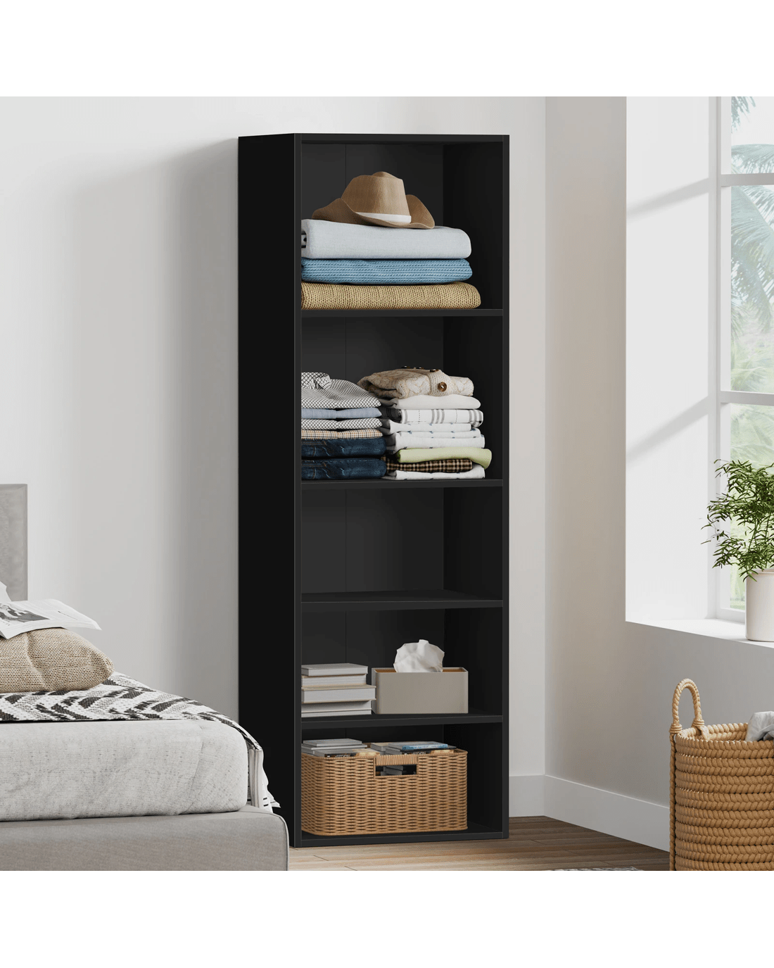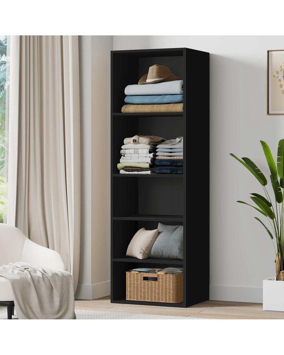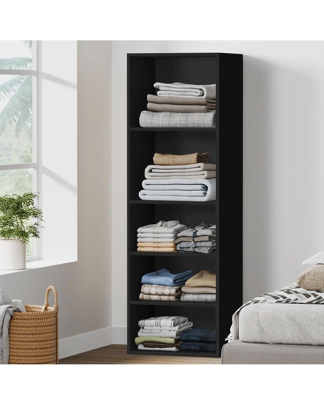 Ample Storage - As a well-organized wardrobe, it provides sufficient space with 5 open shelves to keep your room tidy and free of clutter. Two big shelves at the top are ideal for blankets, sweaters and other clothes while the three bottom shelves with smaller sizes can store your undergarments, socks, and so on. This design offers easy visibility and access to clothing for those who value convenience.