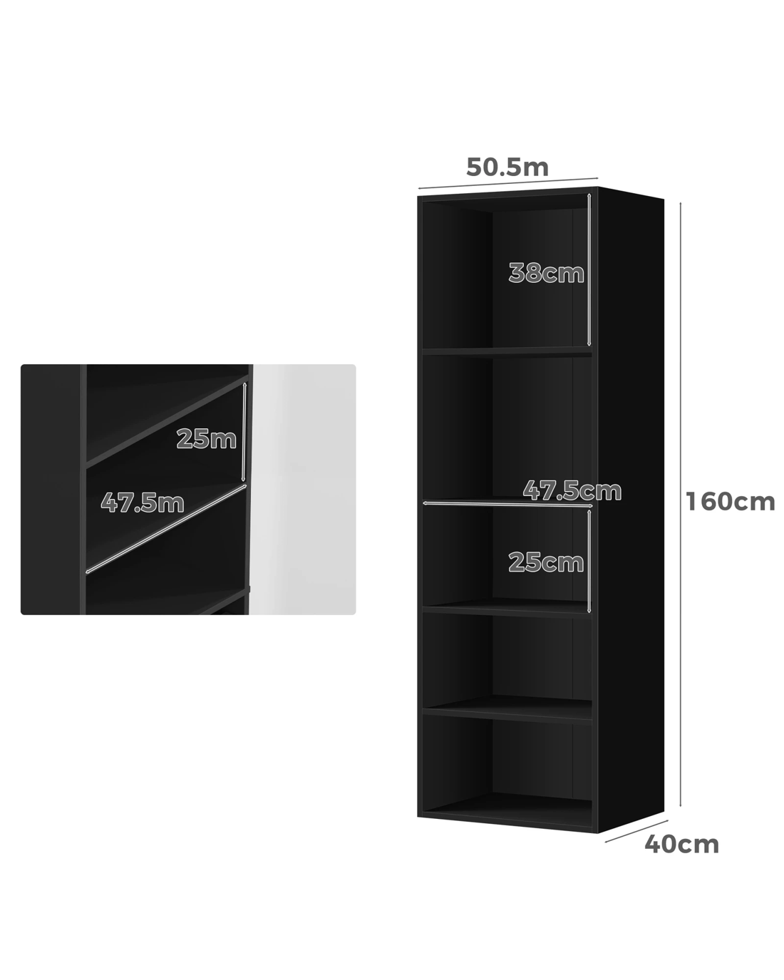 * Overall dimensions: 50.5 cm x 40 cm x 160 cm (refer to dimension photo for detailed sizes)