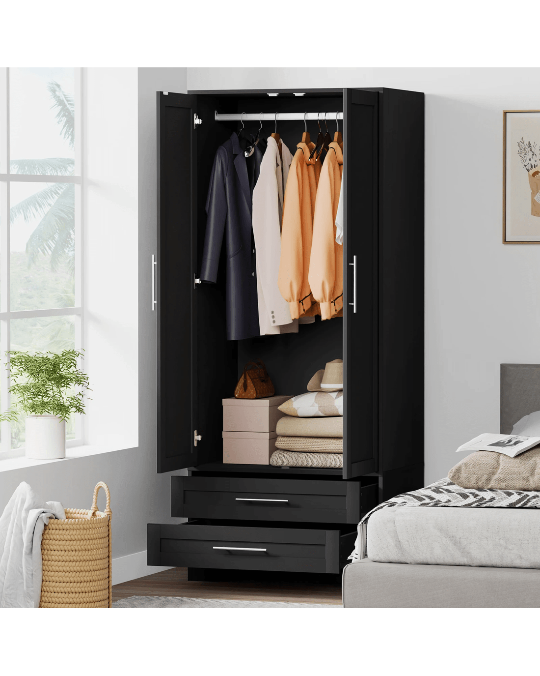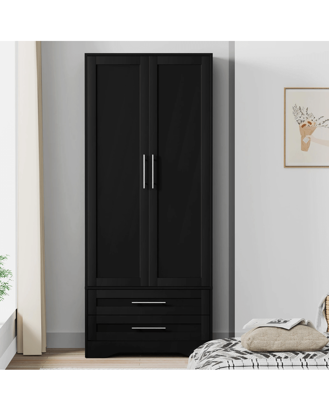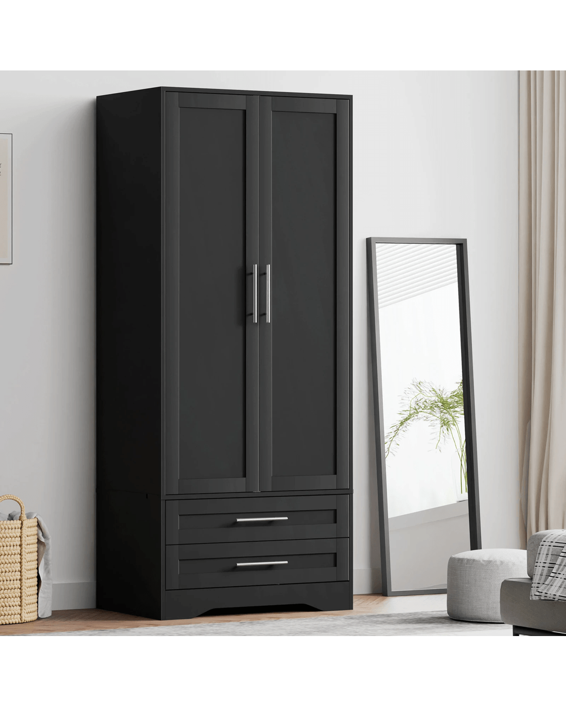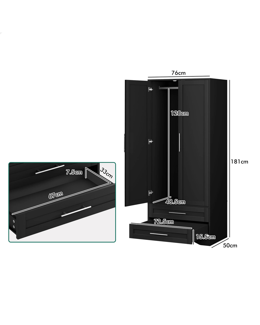 Ample Storage - As a well-organized wardrobe, it provides sufficient space with a large 2-door cabinet and 2 drawers to keep your room tidy and free of clutter. Featuring a hanging rail, the cabinet is perfectly convenient for storing longer clothes, like dresses, coats and shirts. The smaller concealed drawers at the bottom are ideal for your undergarments, socks and other accessories.