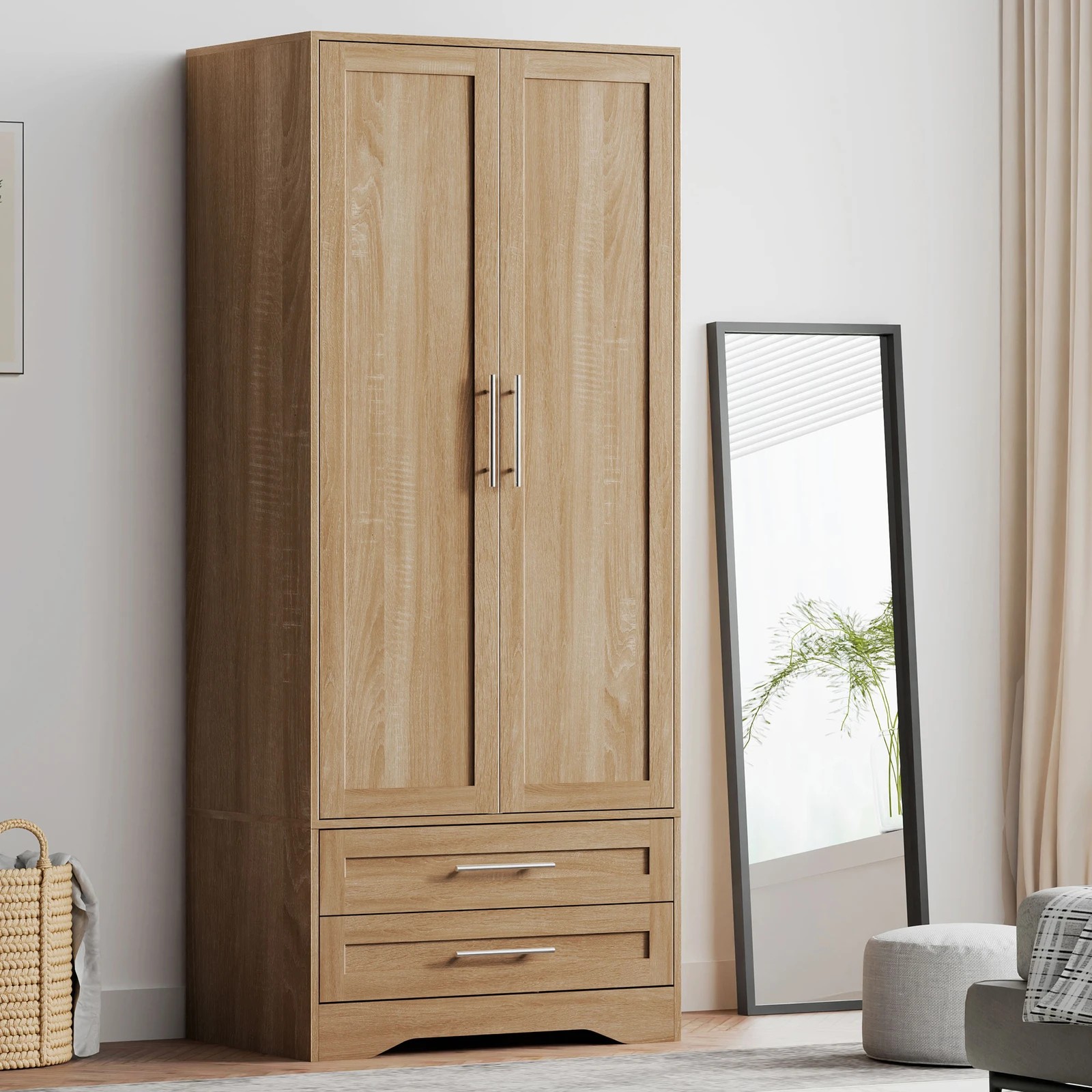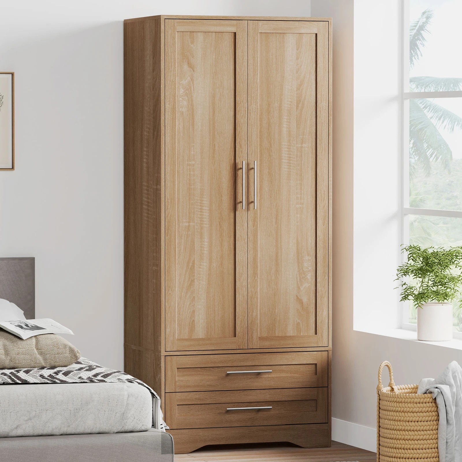 Alfordson Wardrobe Clothes Storage Cabinet Organizer Drawer Hanging Rod - Wood