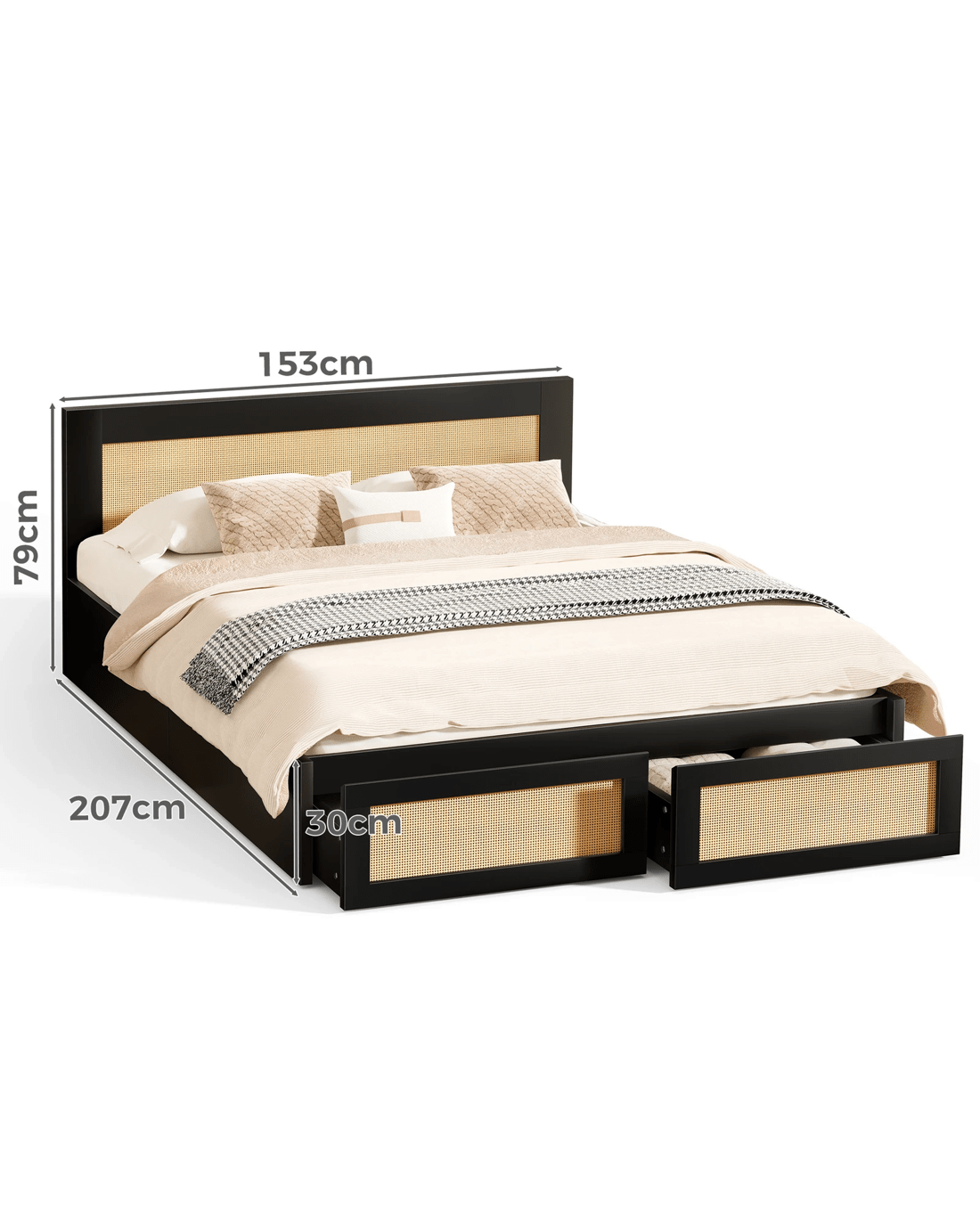 Sold by Aussie Union GroupAlfordson Wooden Bed Frame Queen Size Rattan Bed Base with Storage Drawers - Black