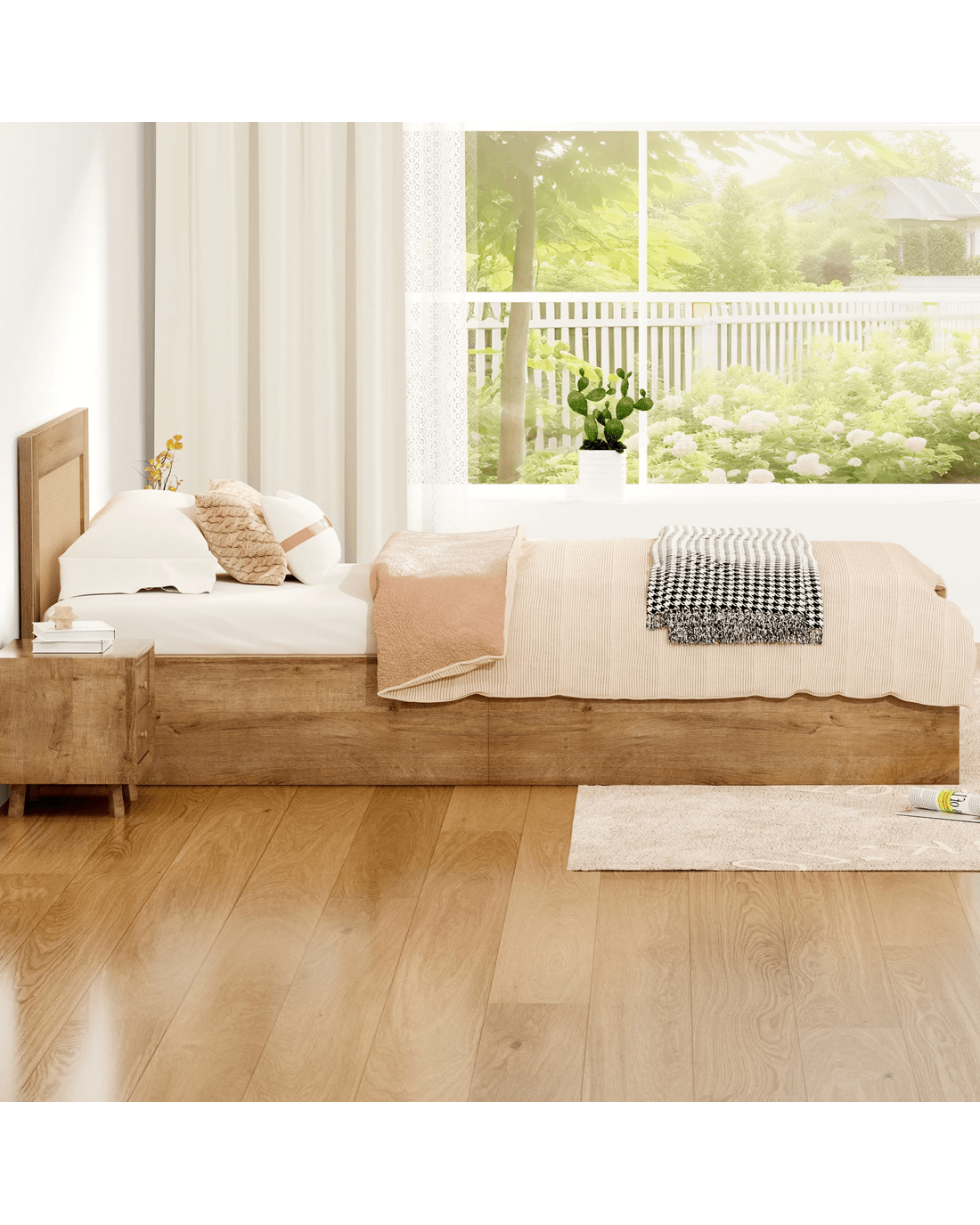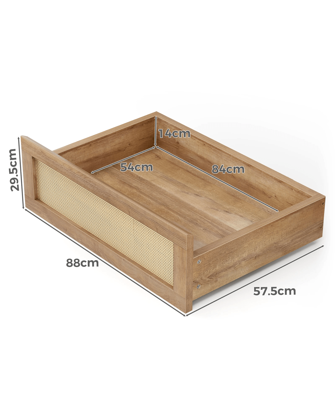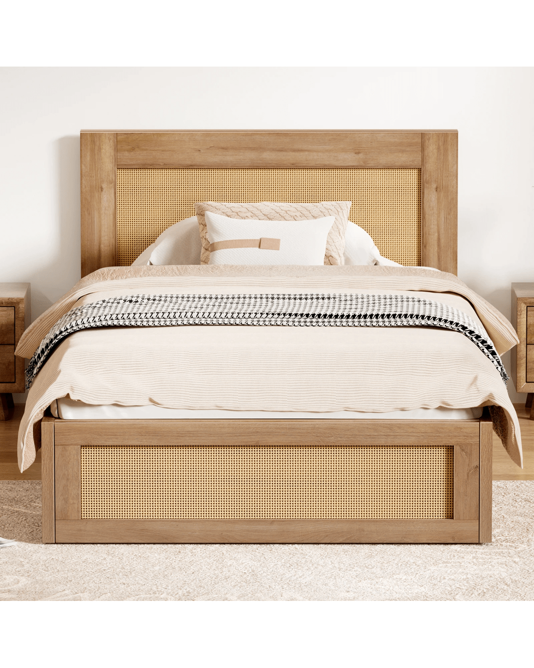 Sold by Aussie Union GroupAlfordson Wooden Bed Frame Single Size Rattan Bed Base with Storage Drawer - Oak