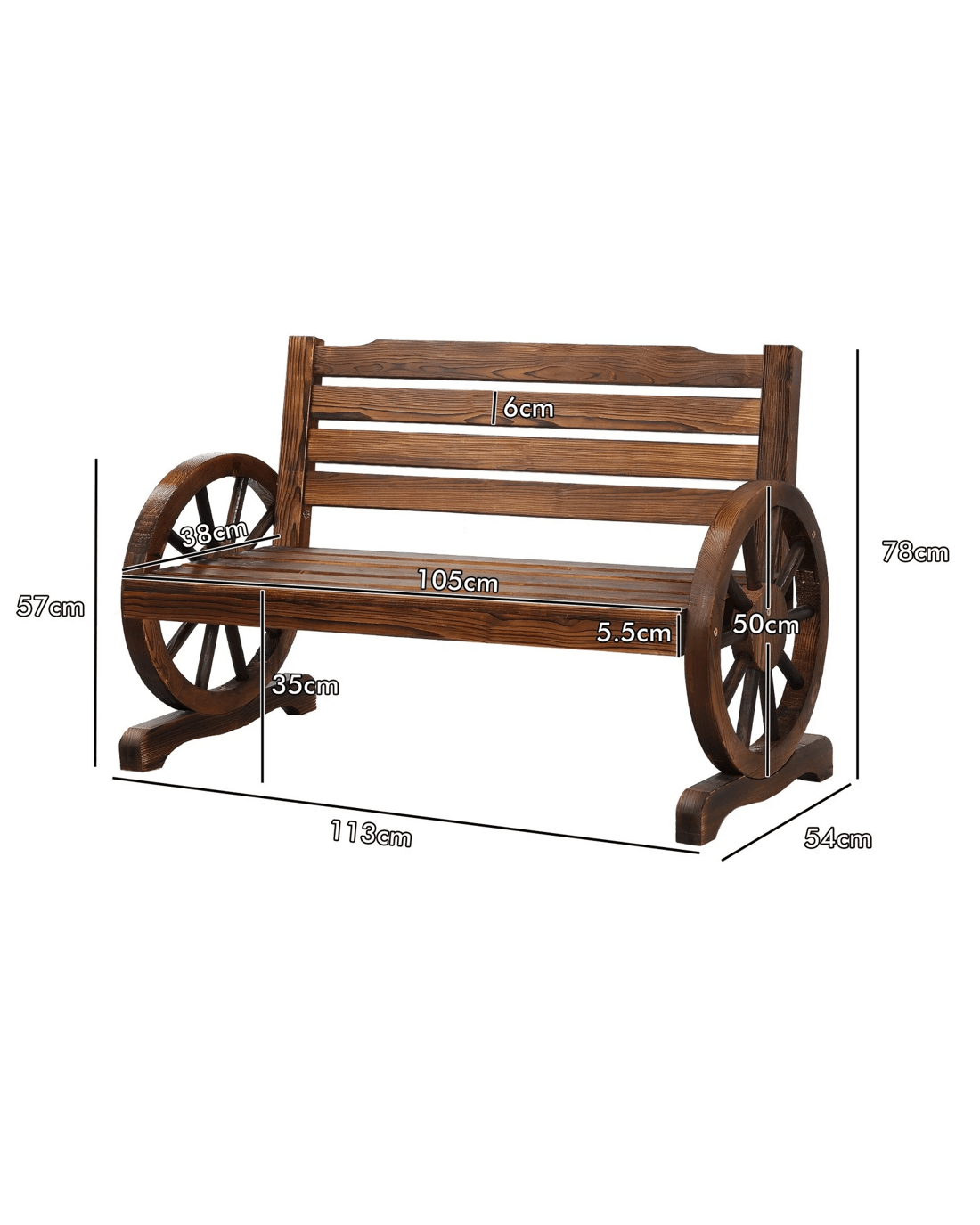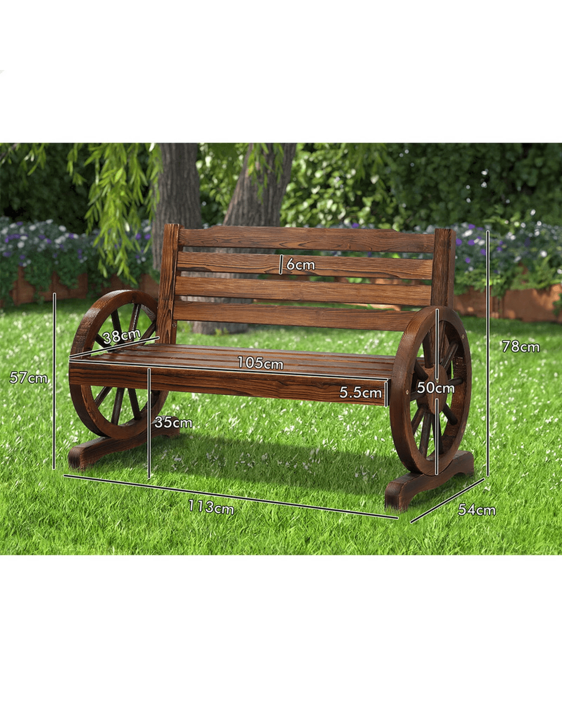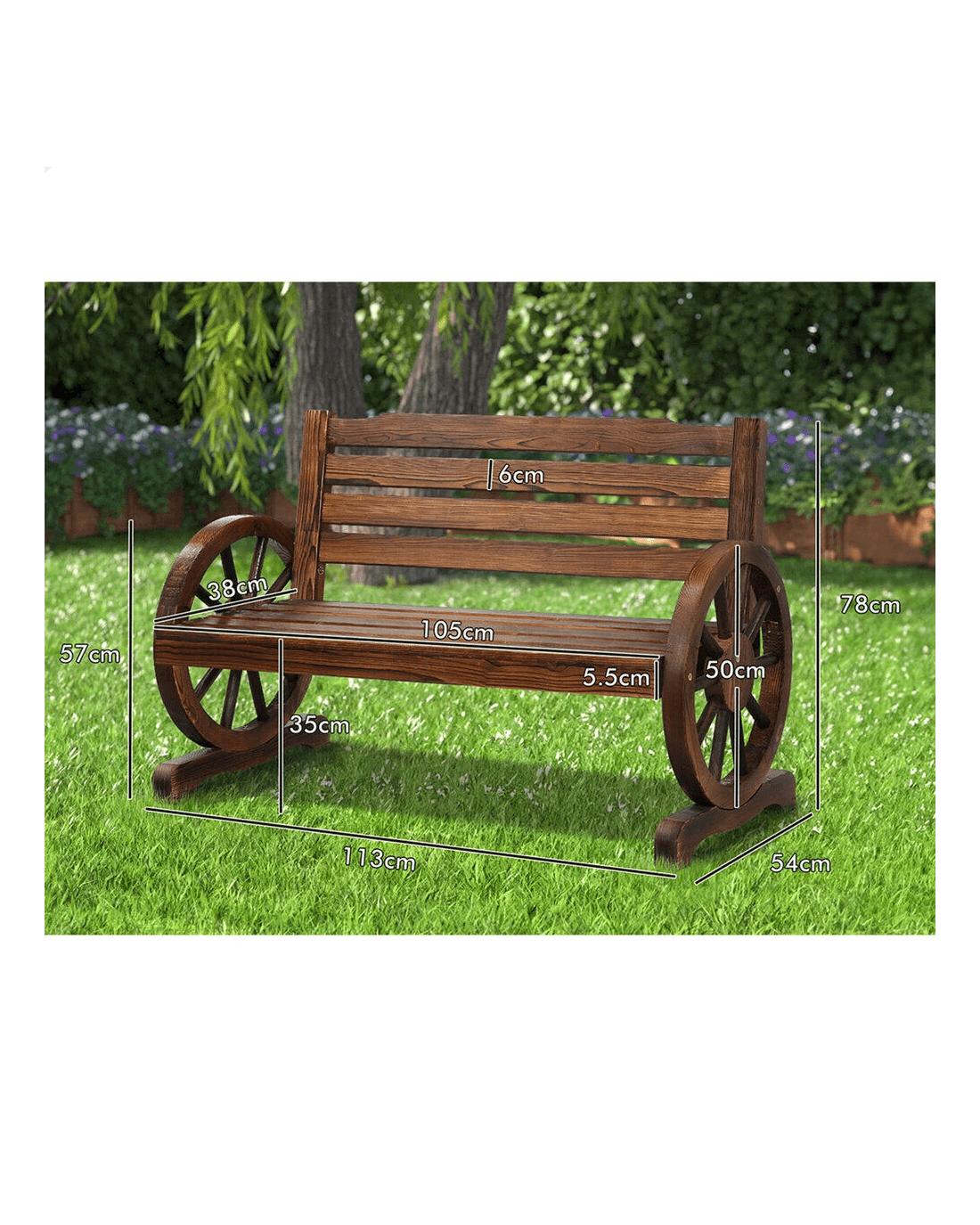Sold by Aussie Union GroupAlfordson Wooden Garden Bench Wagon Wheel Chair Seat Outdoor Patio - Charcoal