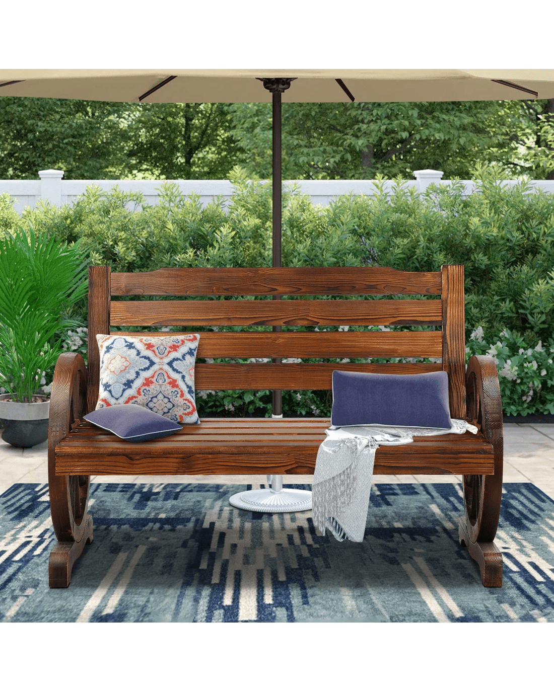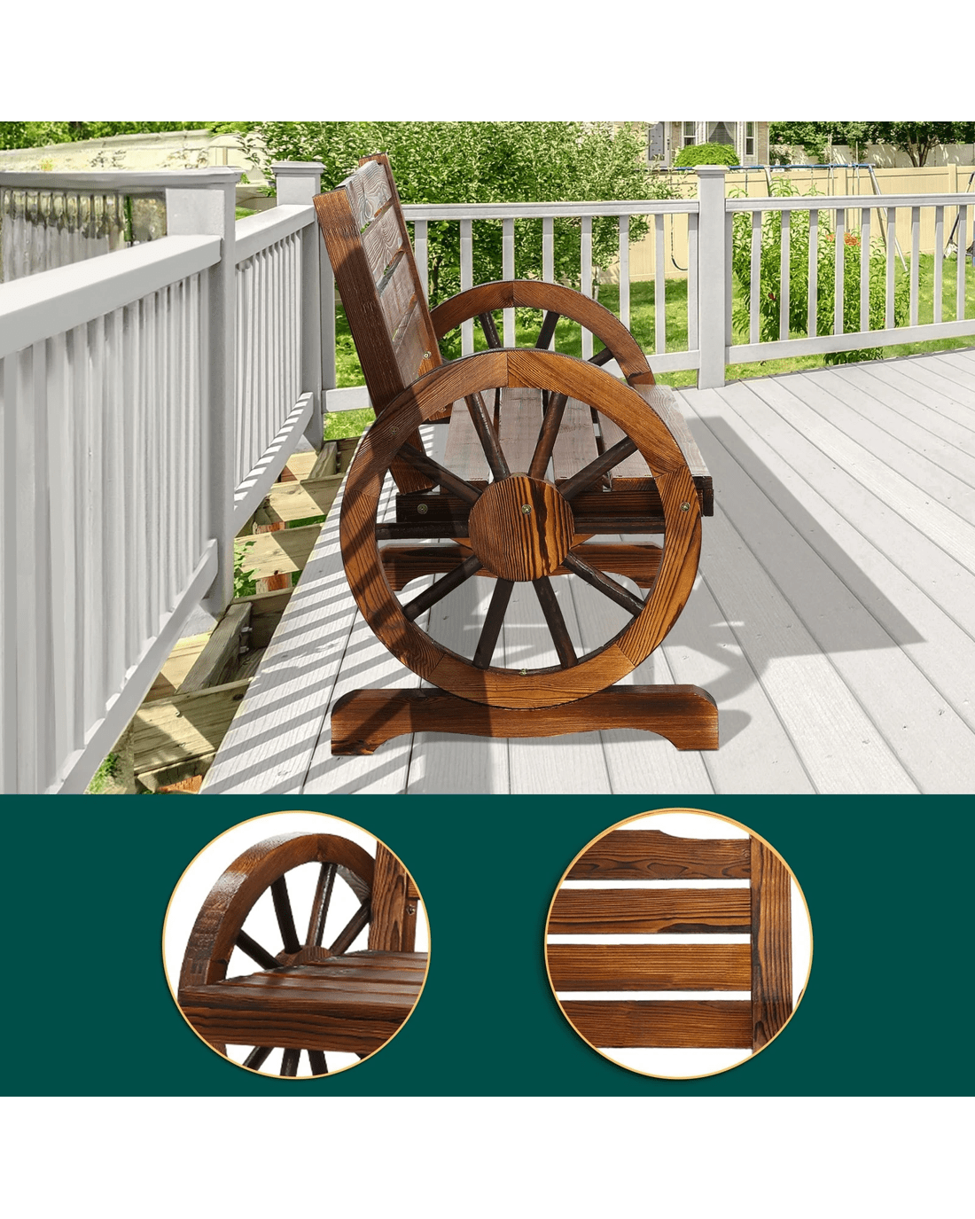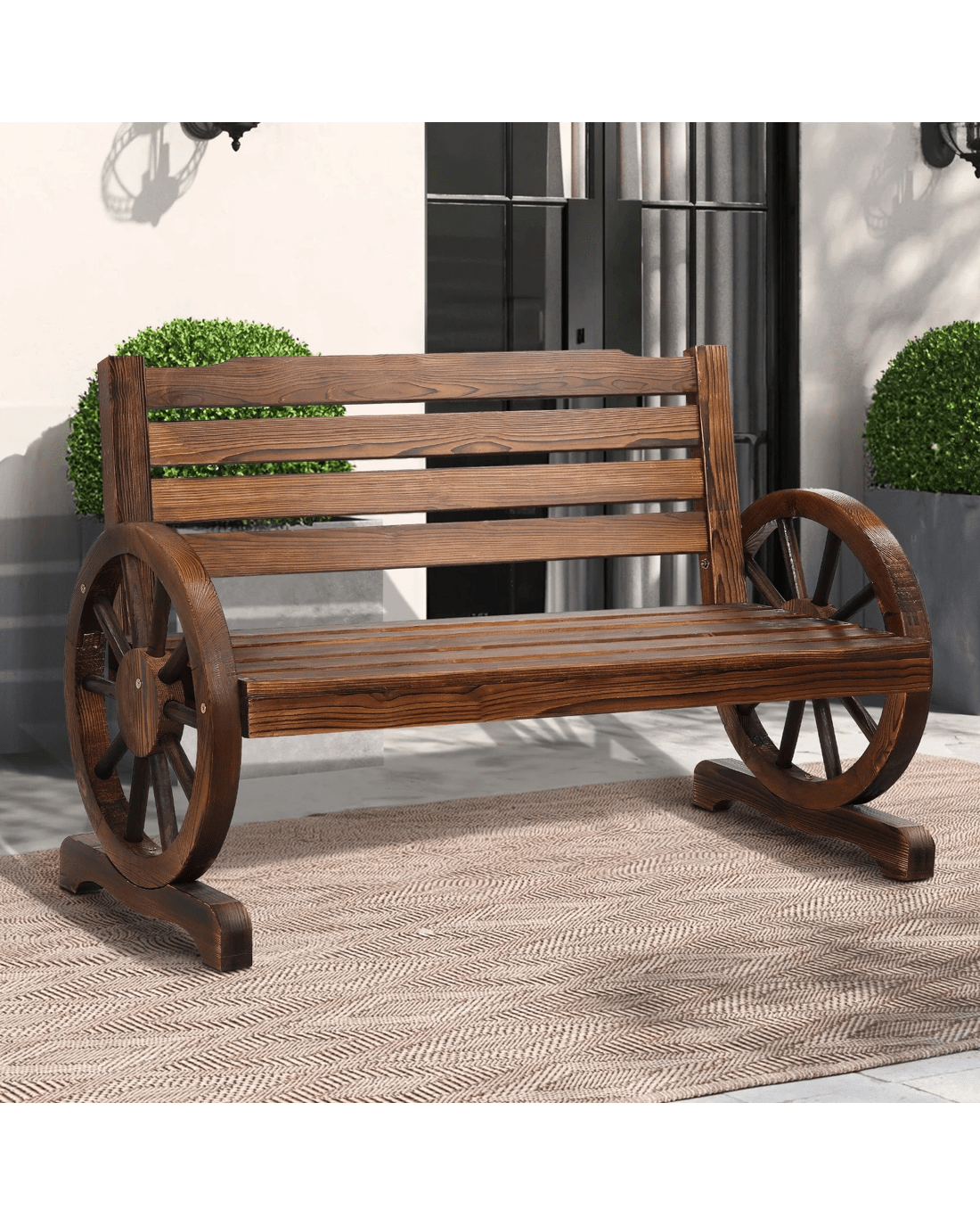Sold by Aussie Union GroupAlfordson Wooden Garden Bench Wagon Wheel Chair Seat Outdoor Patio - Charcoal