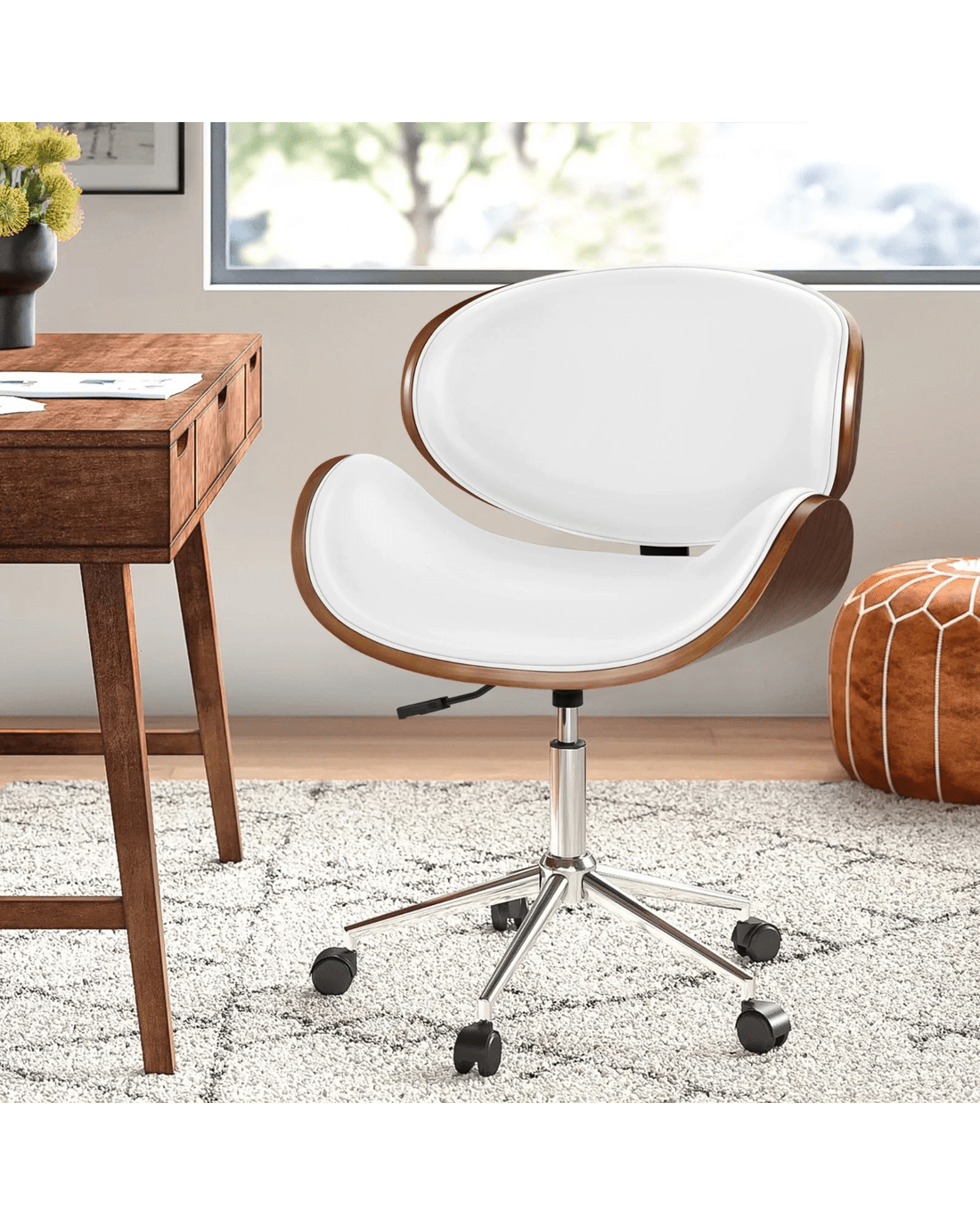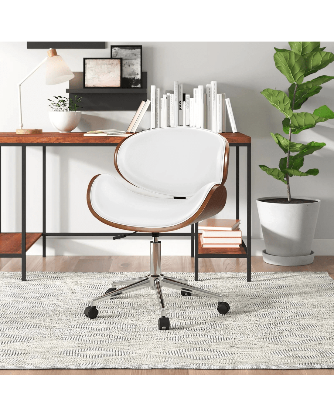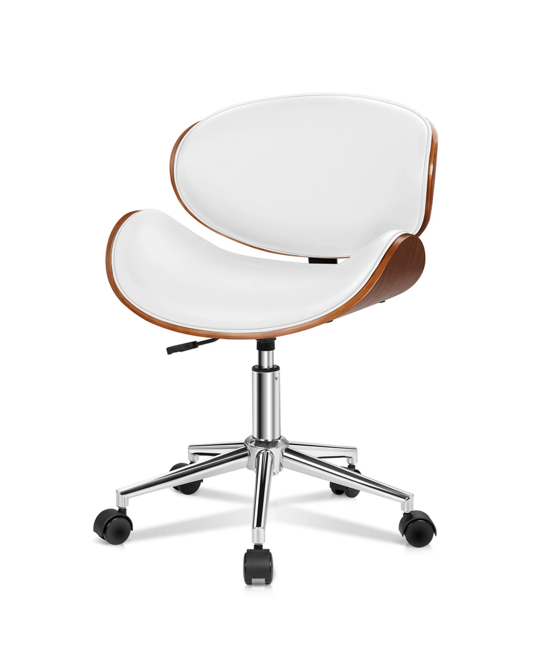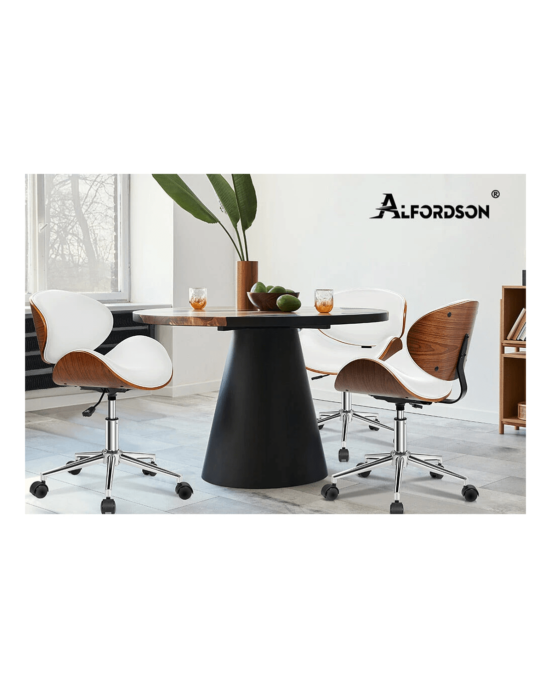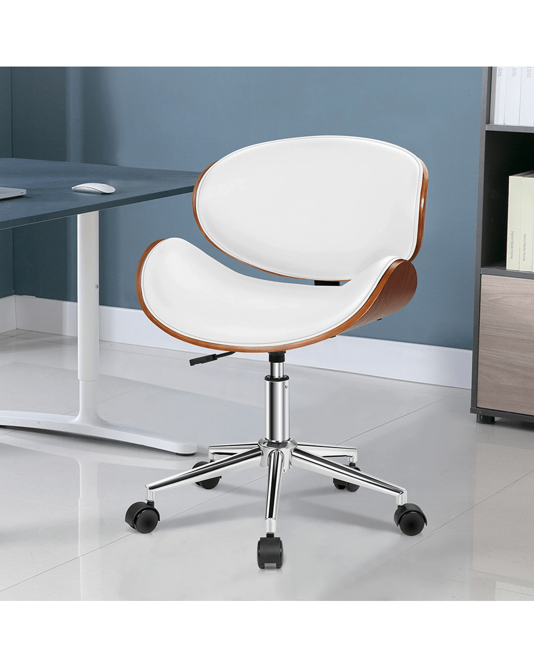 Sold by Aussie Union GroupAlfordson Wooden Office Chair Computer Chairs Bentwood Seat Leather - White