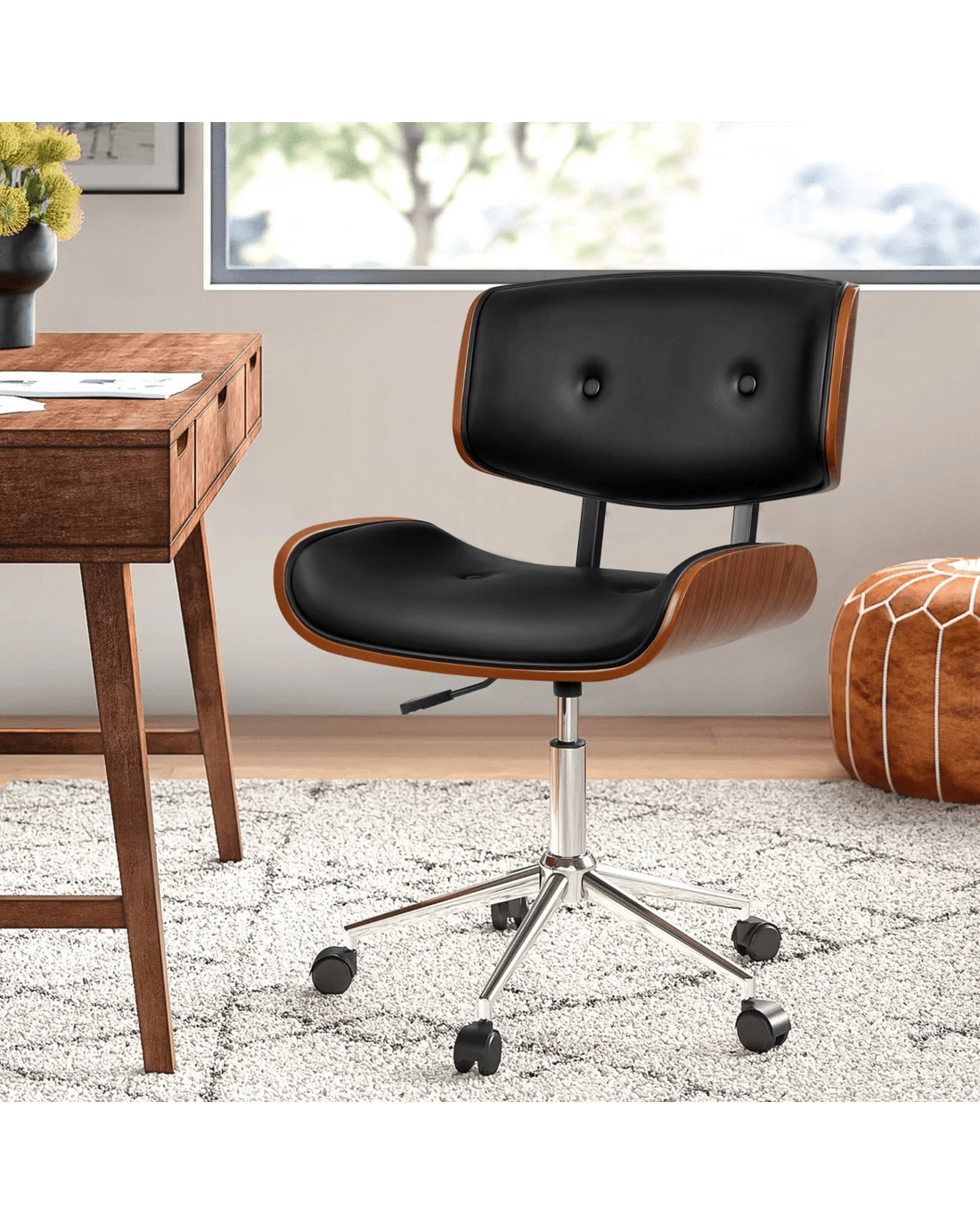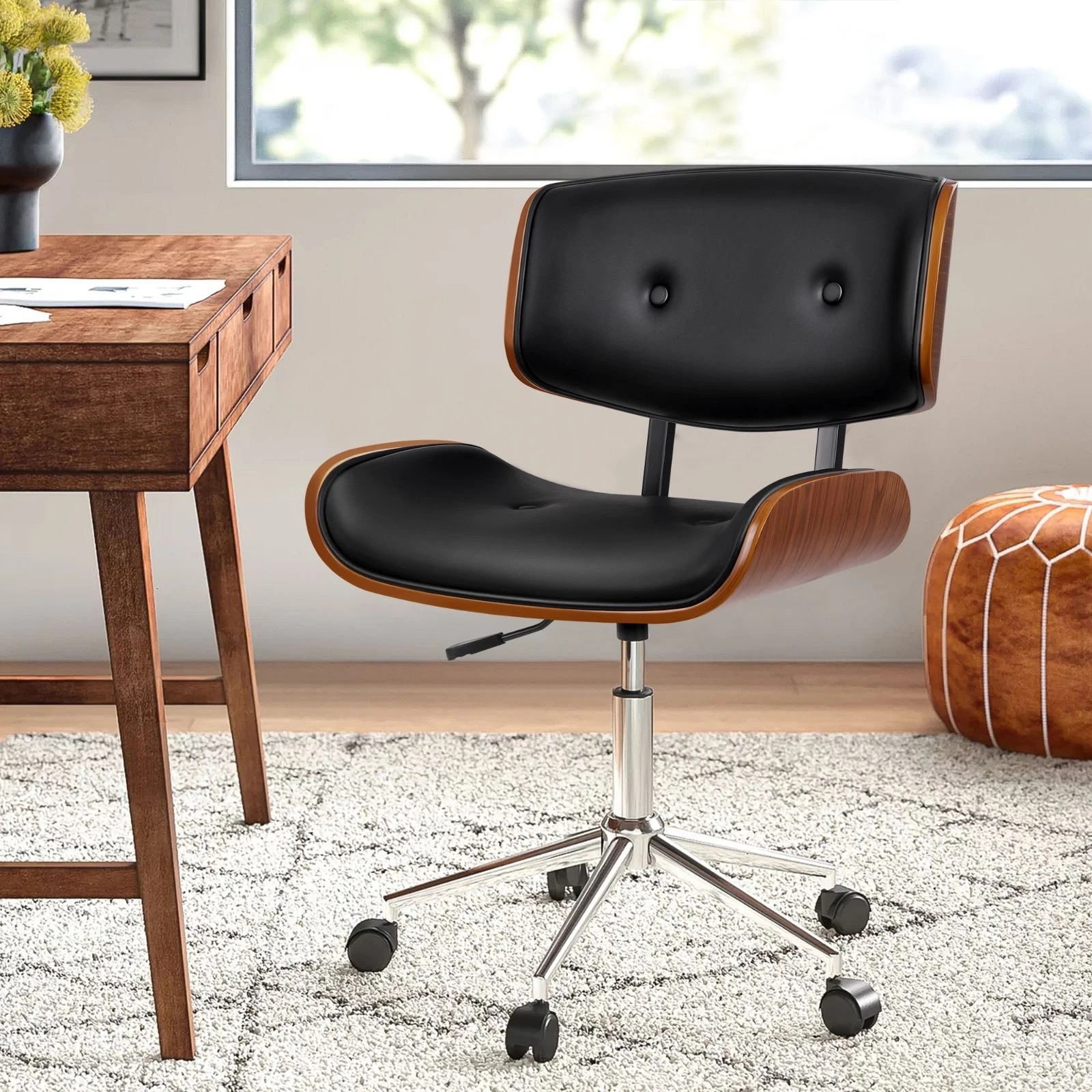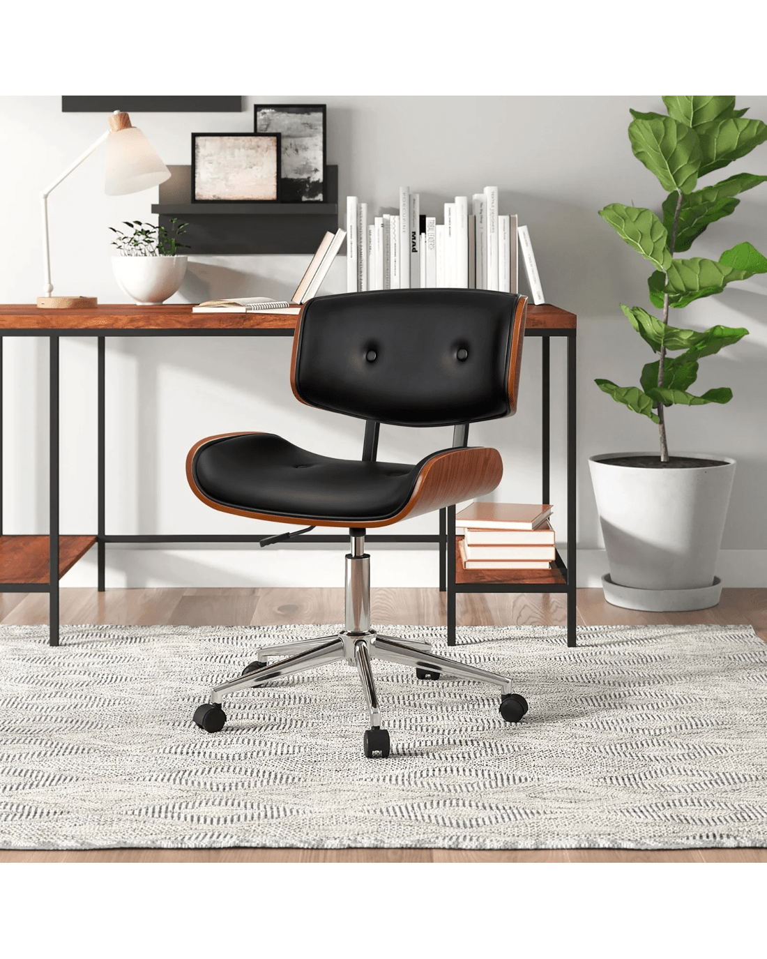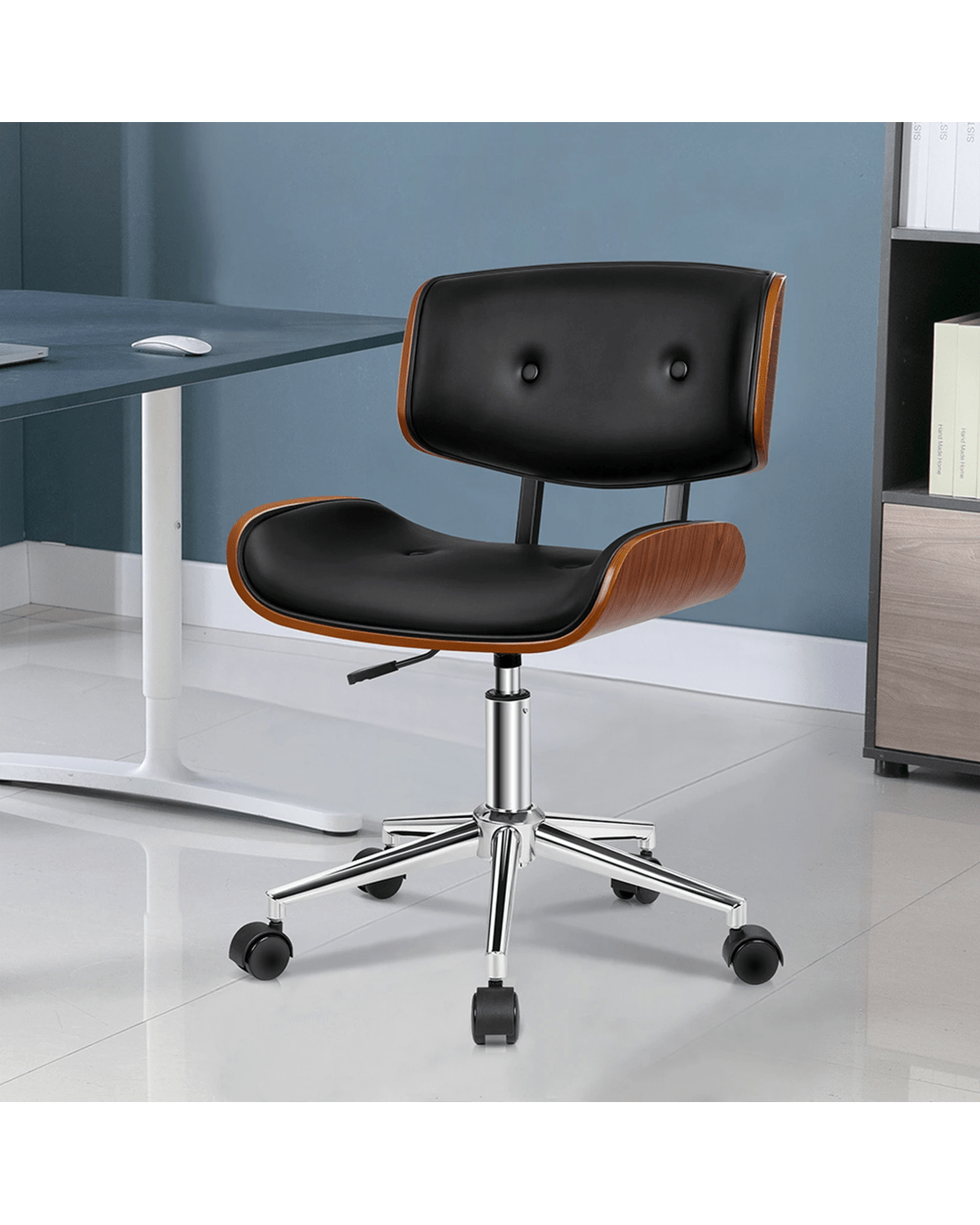 Alfordson Wooden Office Chair Computer Chairs Executive Seat Leather - Black