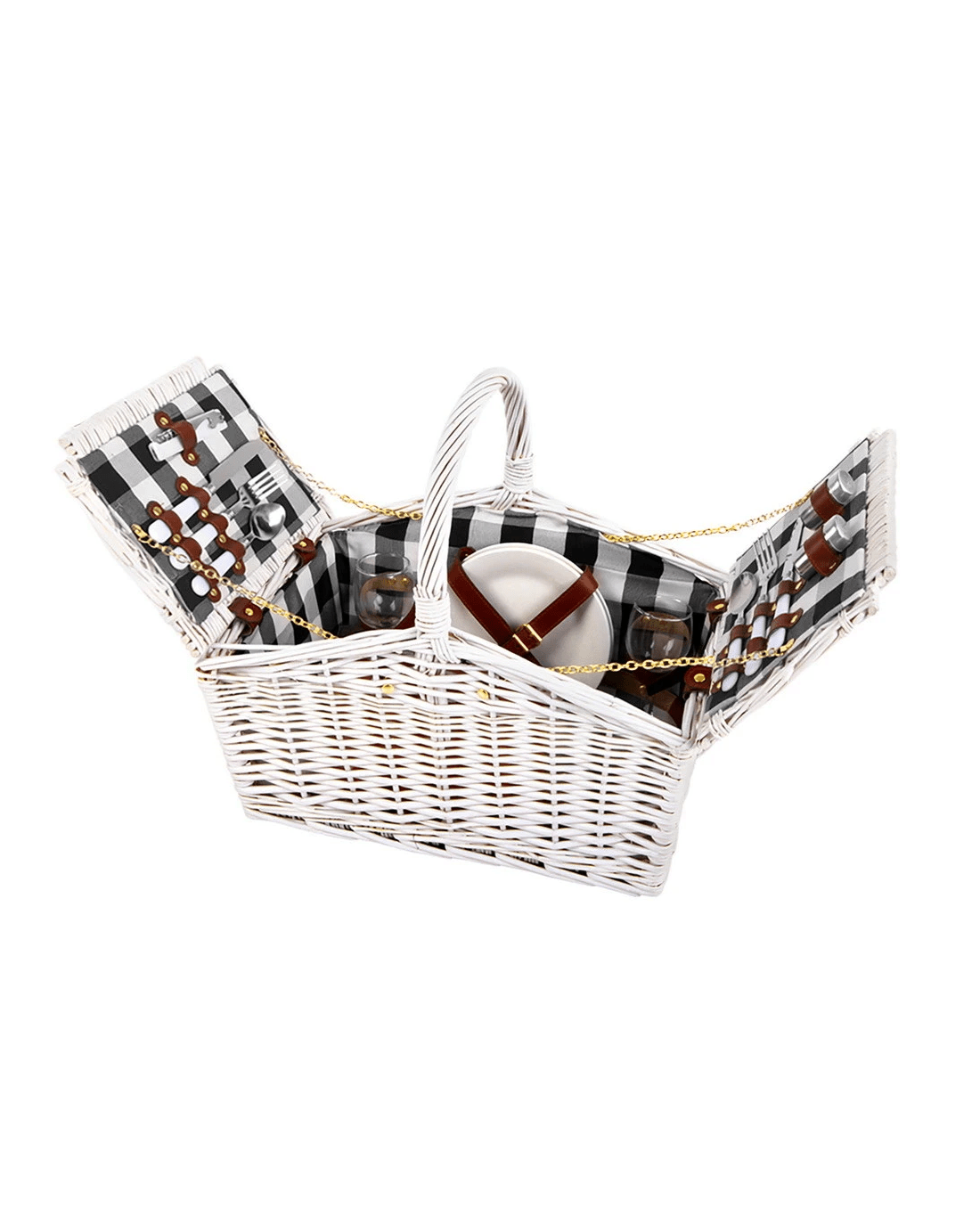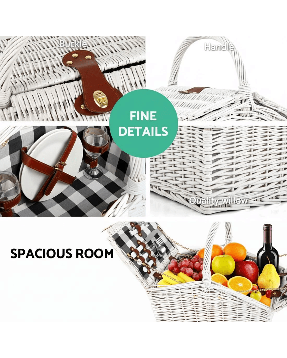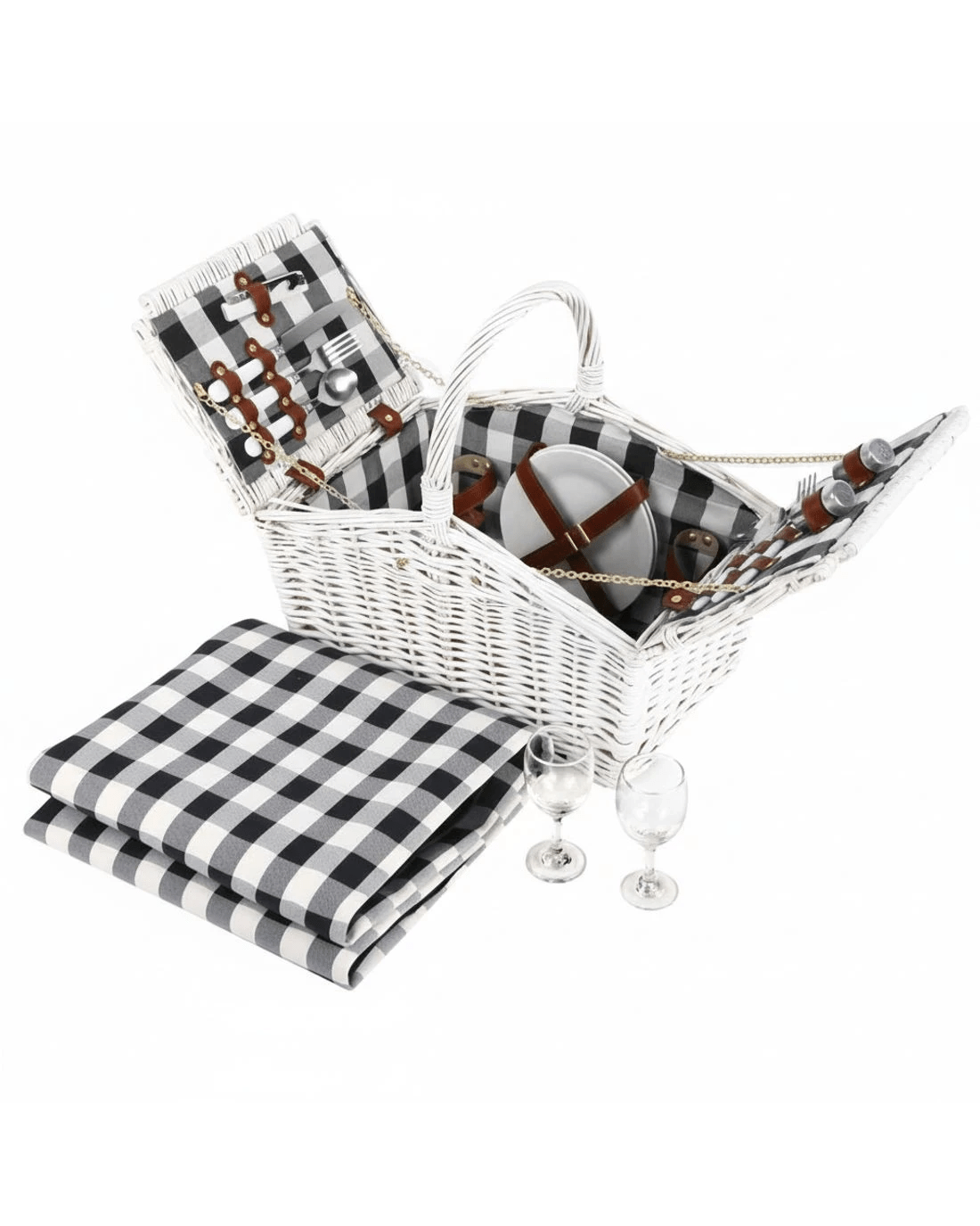 Made from quality willow with PU leather straps and cotton linen lining, this sensational 2 person picnic basket is designed for picnic fun. What's included are for 2 sets of cutleries, wine glasses, plates, napkins and even cheeseboard for an easy and enjoyable outdoor activities. Plus a colour matching blanket to sit on when you find a nice spot anywhere that you desire.This 2 person picnic basket is perfect for the races, harvest picnics, grape grazing events, Christmas and summer gatherings! You'll be surprised how often it will be used.