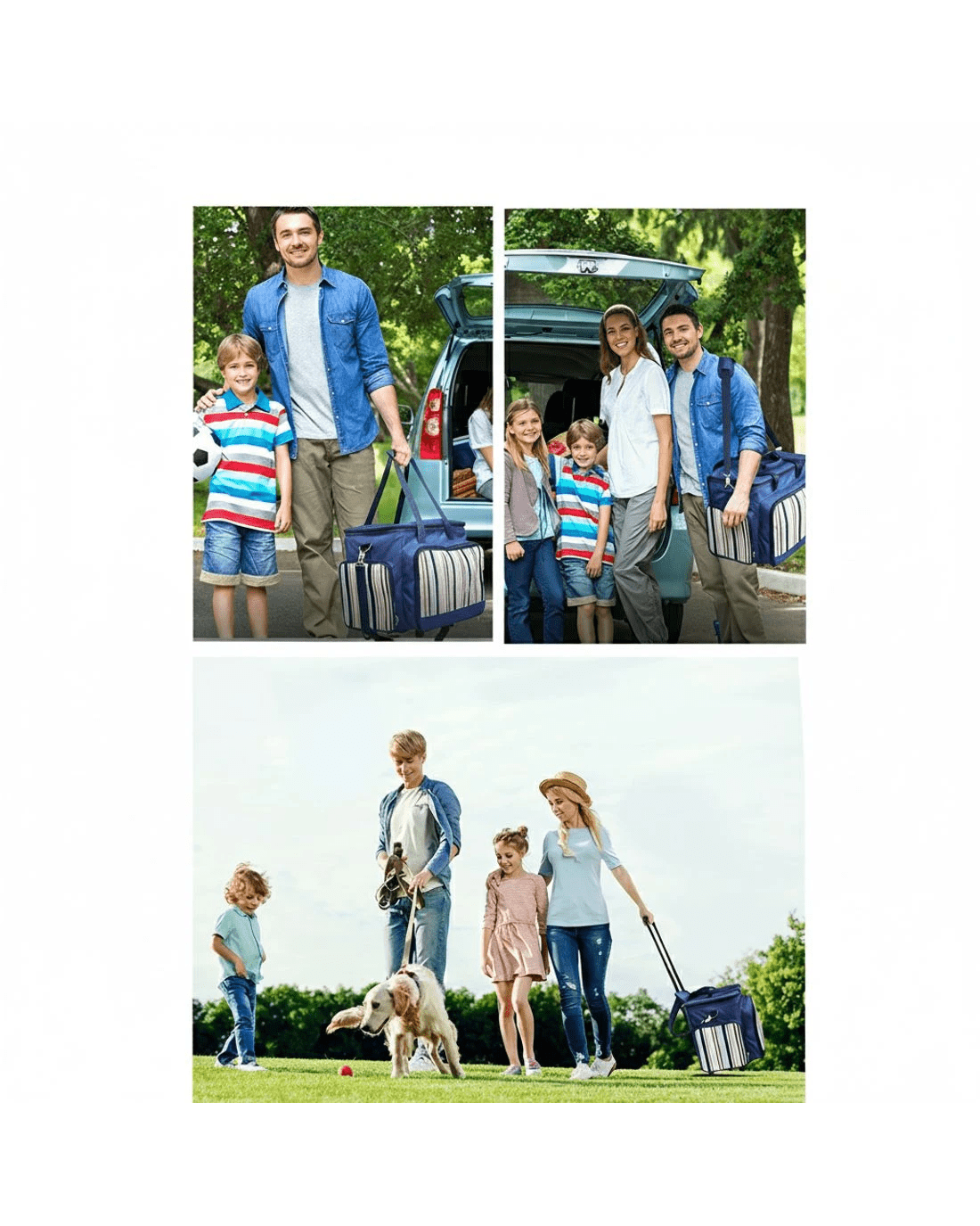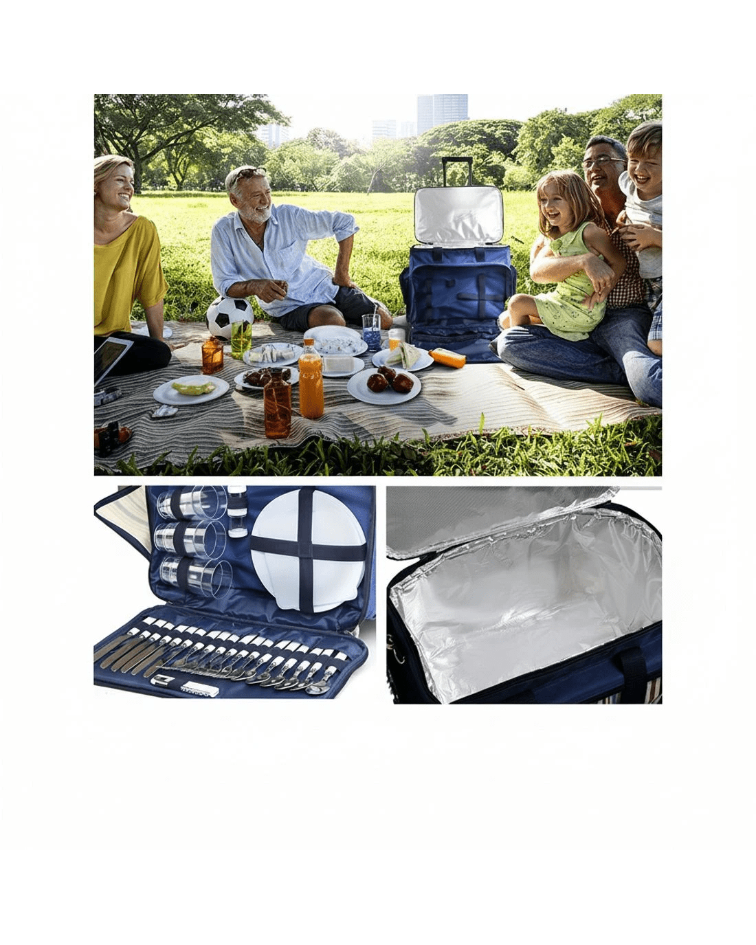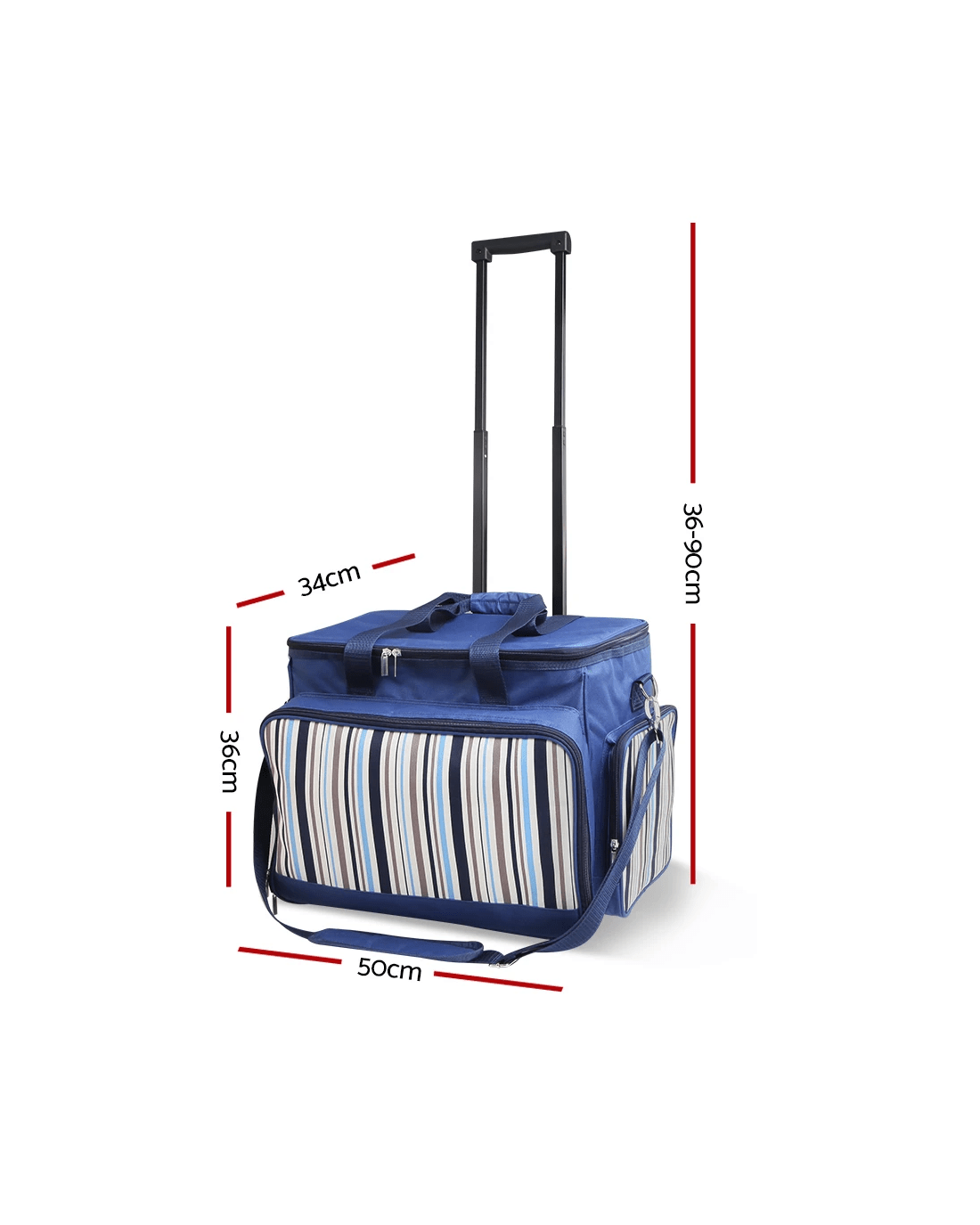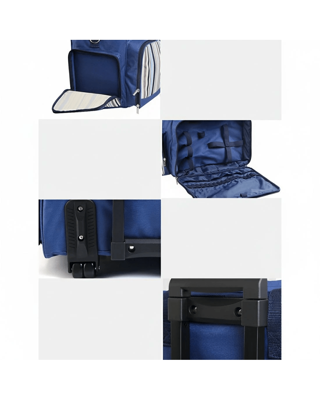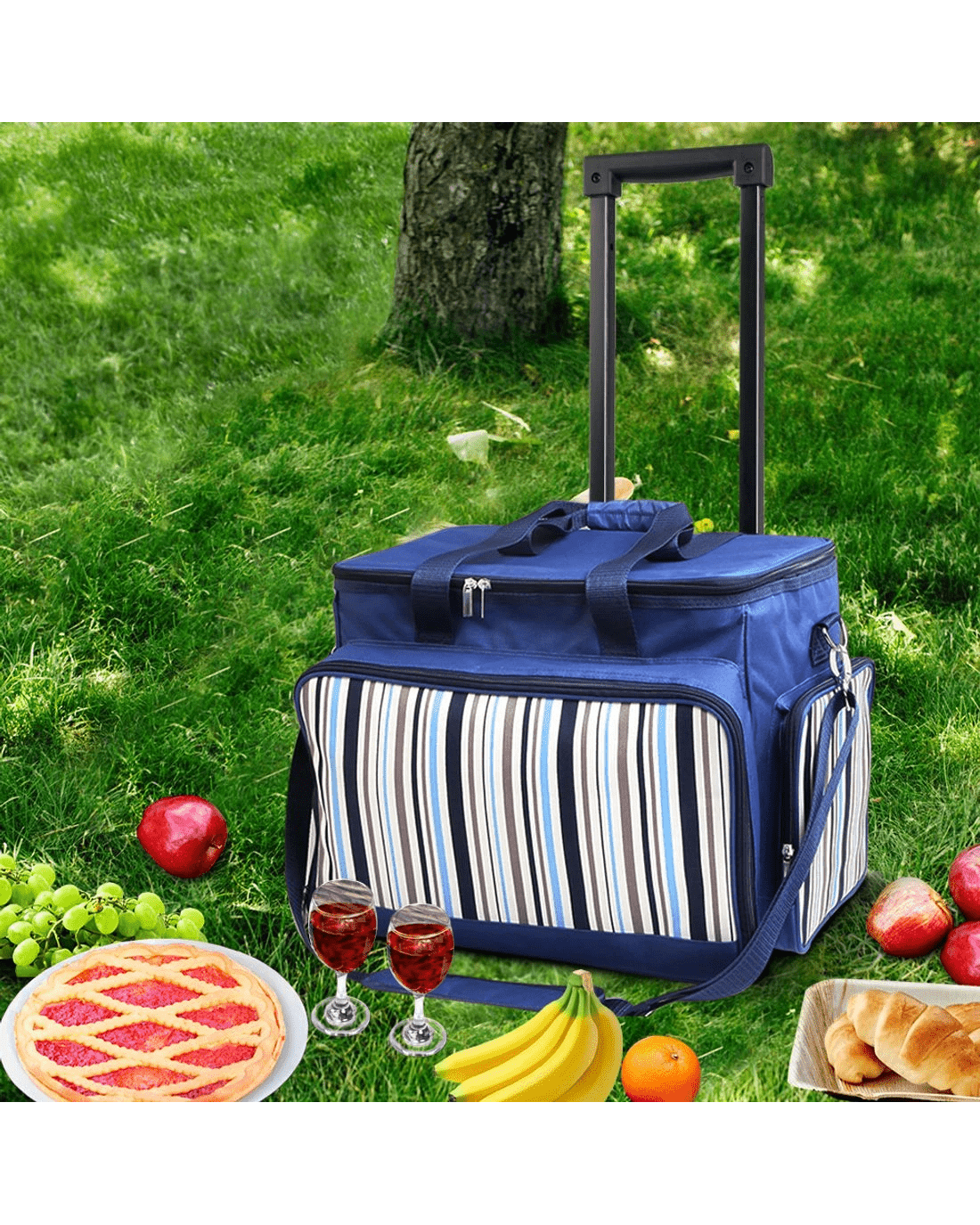Crafted from quality waterproof fabric, our spacious Picnic Trolley Bag features meticulous craftsmanship with sturdy straps and a built-in thermally-insulated cooler bag to keep your sumptuous food fresh and warm, and drinks refreshingly cool. There are also multiple side pockets for extra storage too.