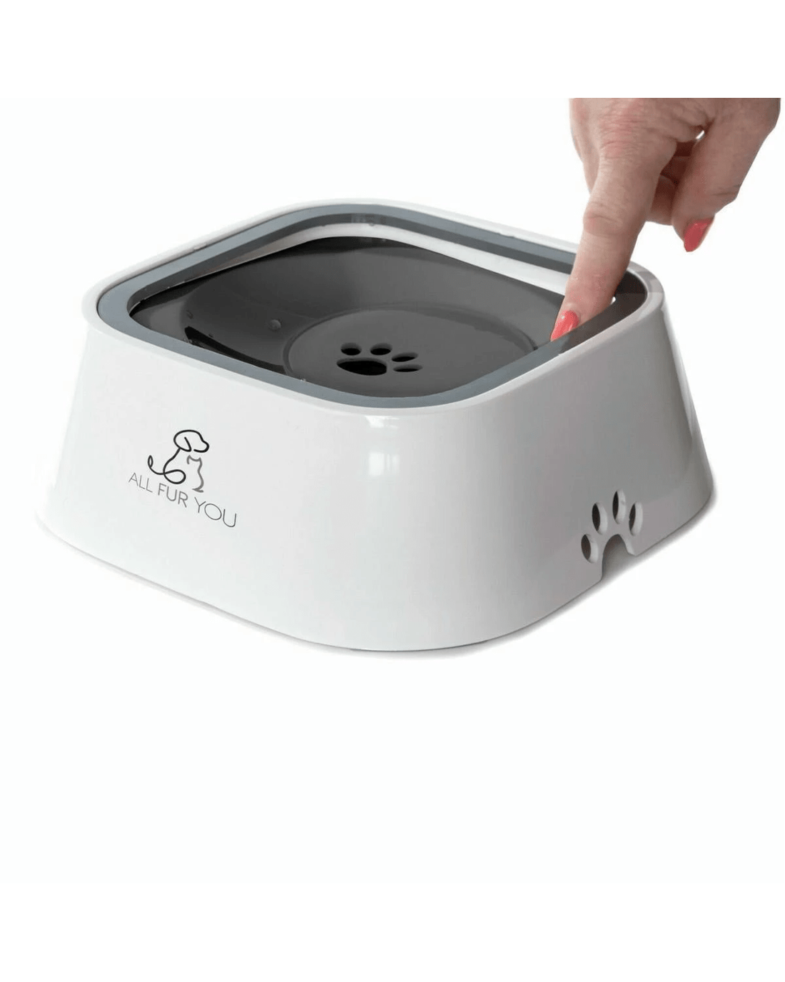Some dogs love to splash water all over the floor. Or they can't help making a mess, because their big adorable jowls always end up dangling in the water as they drink. Other dogs love to go on road trips, and need a water bowl that's up for the challenge. Meet the All Fur You Anti-Splash Dog Bowl - the solution to all your water woes! Its smart floating plate lets your dog press down and drink. No mess, no spills. And it's ideal for road trips, too! Made from plastic, with a removable outer rim and floating plate Designed for cats and dogs - however, the Anti-Splash Bowl is quite large, and not suited to kittens or very small dogs Fill the Anti-Splash Bowl with water and the floating plate sits on top To drink, your pet will need to either drink from the centre of the bowl or press down on the floating plate to make the water level rise Prevents your pet making a mess as they drink Ideal for your pet's crate, or in the car, as the car's motion won't cause the bowl to spill Also perfect for dogs with large jowls - they can drink without dipping their jowls into the water Keeps your pet's water clean for longer Dishwasher safe