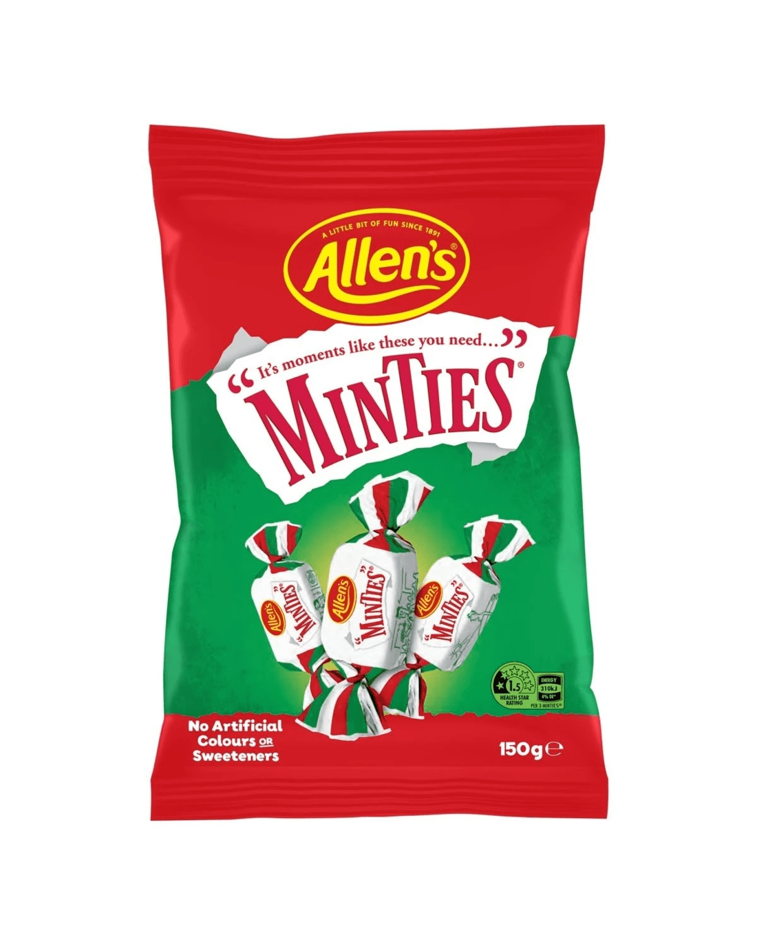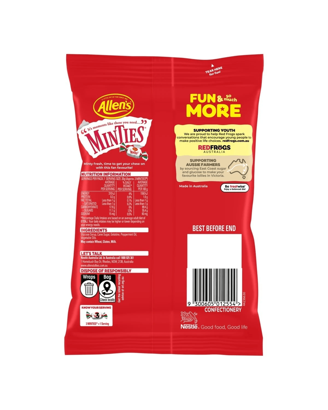 Allen's Minties are refreshingly minty and chewy! Time to get your chew on with this fan favourite lolly! This medium share bag is made for sharing, perfect for all the mint lovers at your next event. Tear along the edges of an open wrapper to make the longest Minties strip… we dare you!