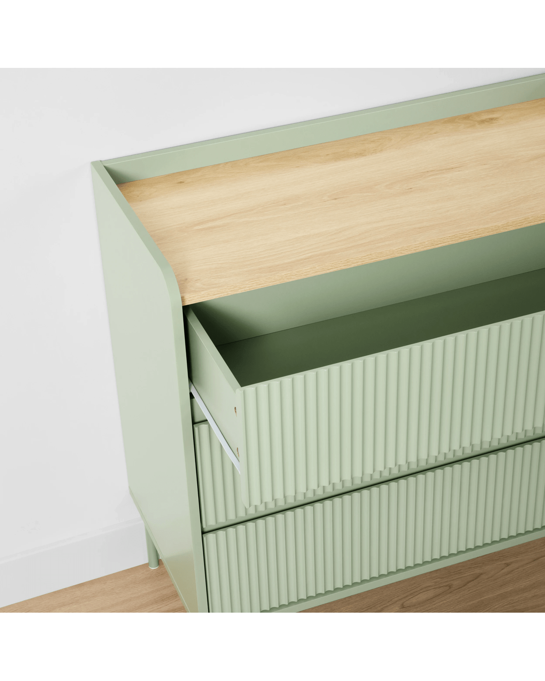 The Alma Chest of Drawers is a stylish and practical solution to organise your space while adding a modern touch to your room decor.