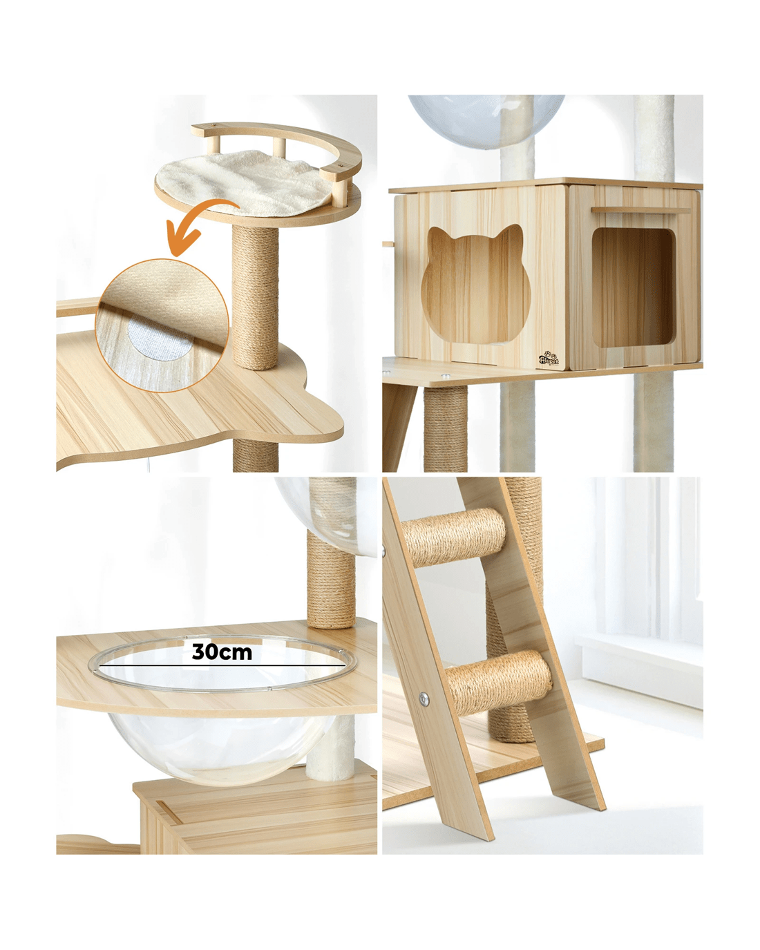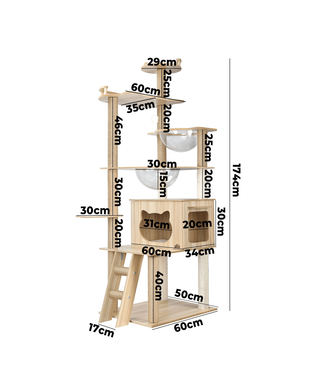 Alopet Cat Tree Scratching Post Scratcher Tower Wood Condo House Bed Large 174cm - Natural