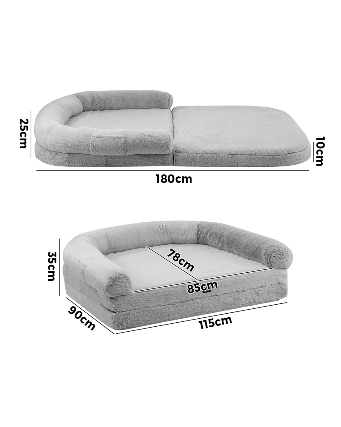 Sold by Kamprad's Oikos 1943Alopet Foldable Human Dog Bed Calming 180cm Pet Mattress Removable Extra Large - Grey
