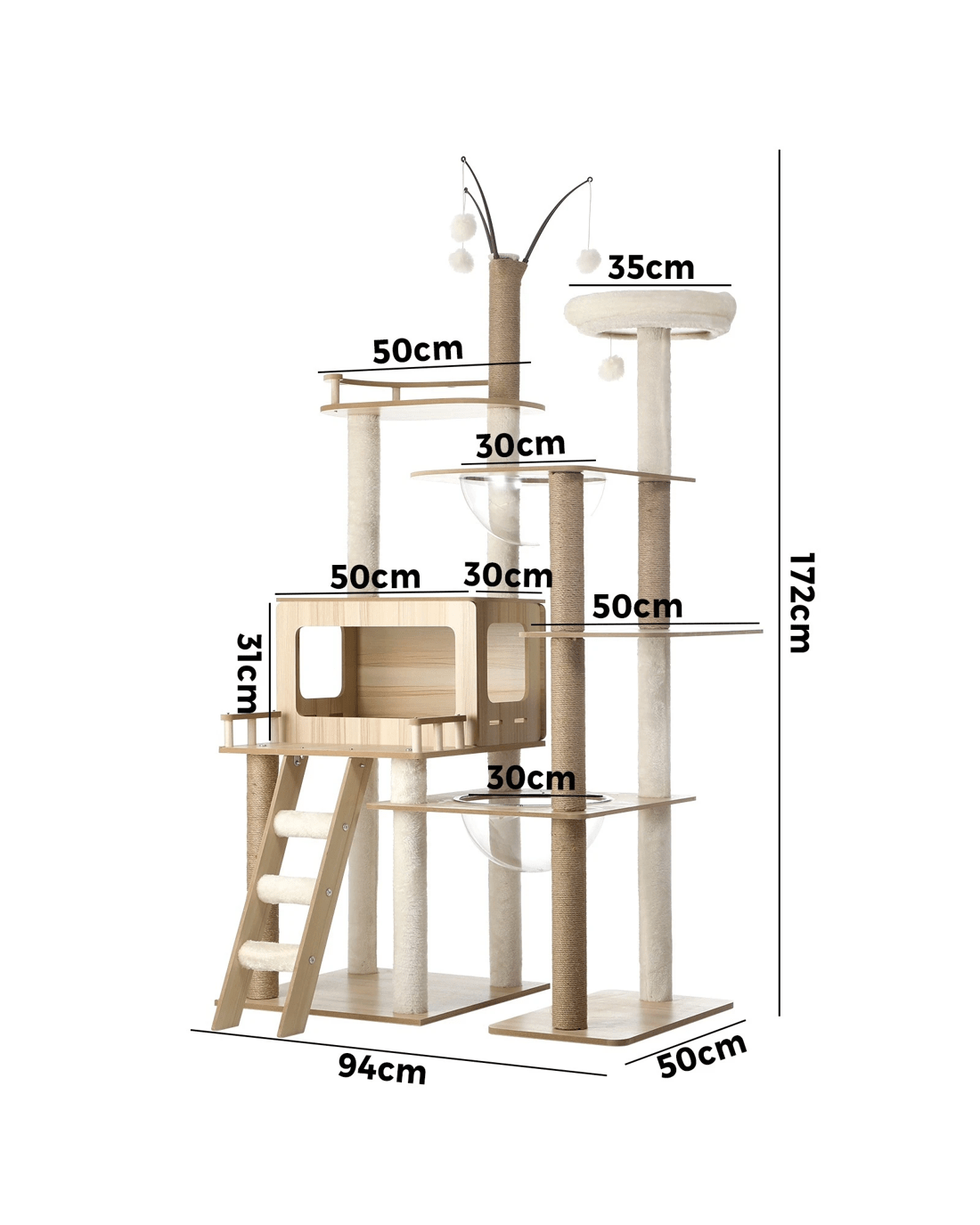 Sold by Kamprad's Oikos 1943Alopet Large Cat Tree Wood Scratcher Scratching Post Tower Condo House Bed 172cm - Natural