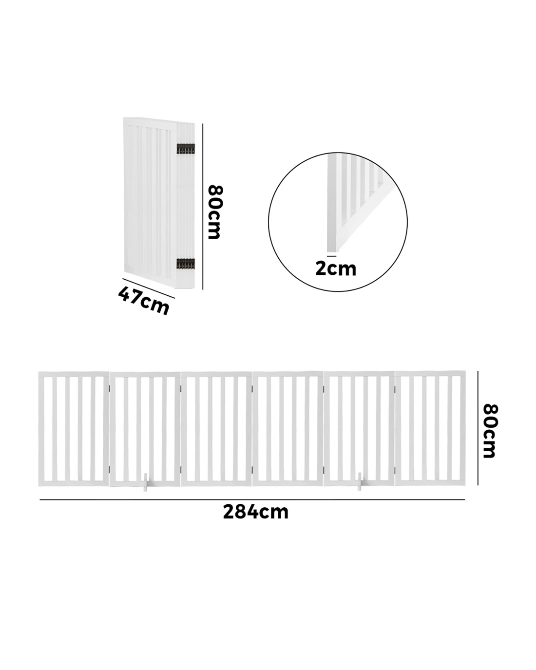 Alopet Wooden Pet Gate Dog Fence Safety Stair Barrier Security Door 6-Panel 80cm - White