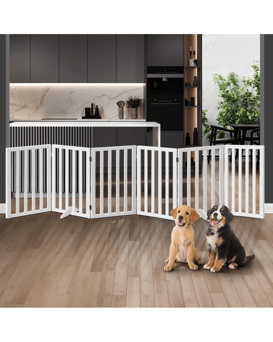 Easy to set up, our indoor pet fence can be configured to fit your specific indoor space, whether it&'s a large living room or a small apartment. It provides a secure, enclosed area for your pet to play, exercise, and relax, while keeping them out of any areas you don&'t want them in. When you&'re ready to take the fence down, it can be easily folded and stored away until you need it again.