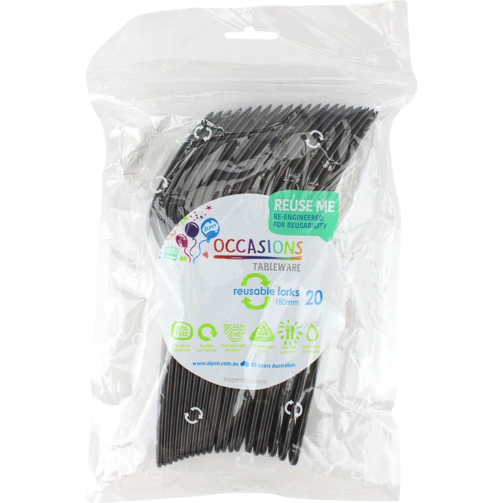 Alpen Black Reusable Plastic Forks (Pack of 20)