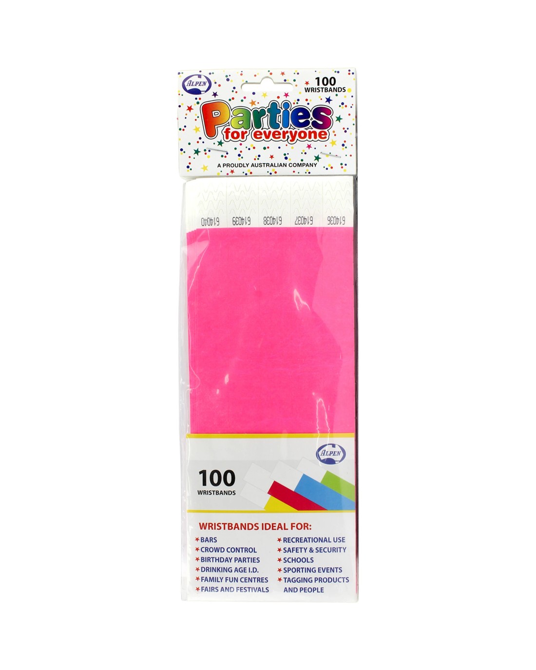 Sold by Discount Party Suppliesalpen Neon Pink Tyvek Wristbands Pack of 100 - Pink