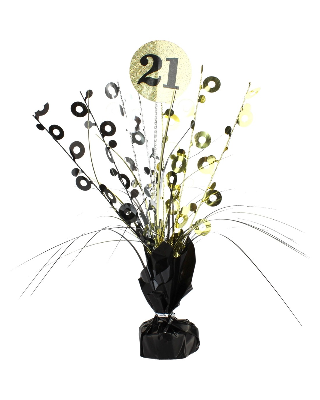Alpen Prismatic 21st Birthday Spray Centrepiece - Black and Gold - Black