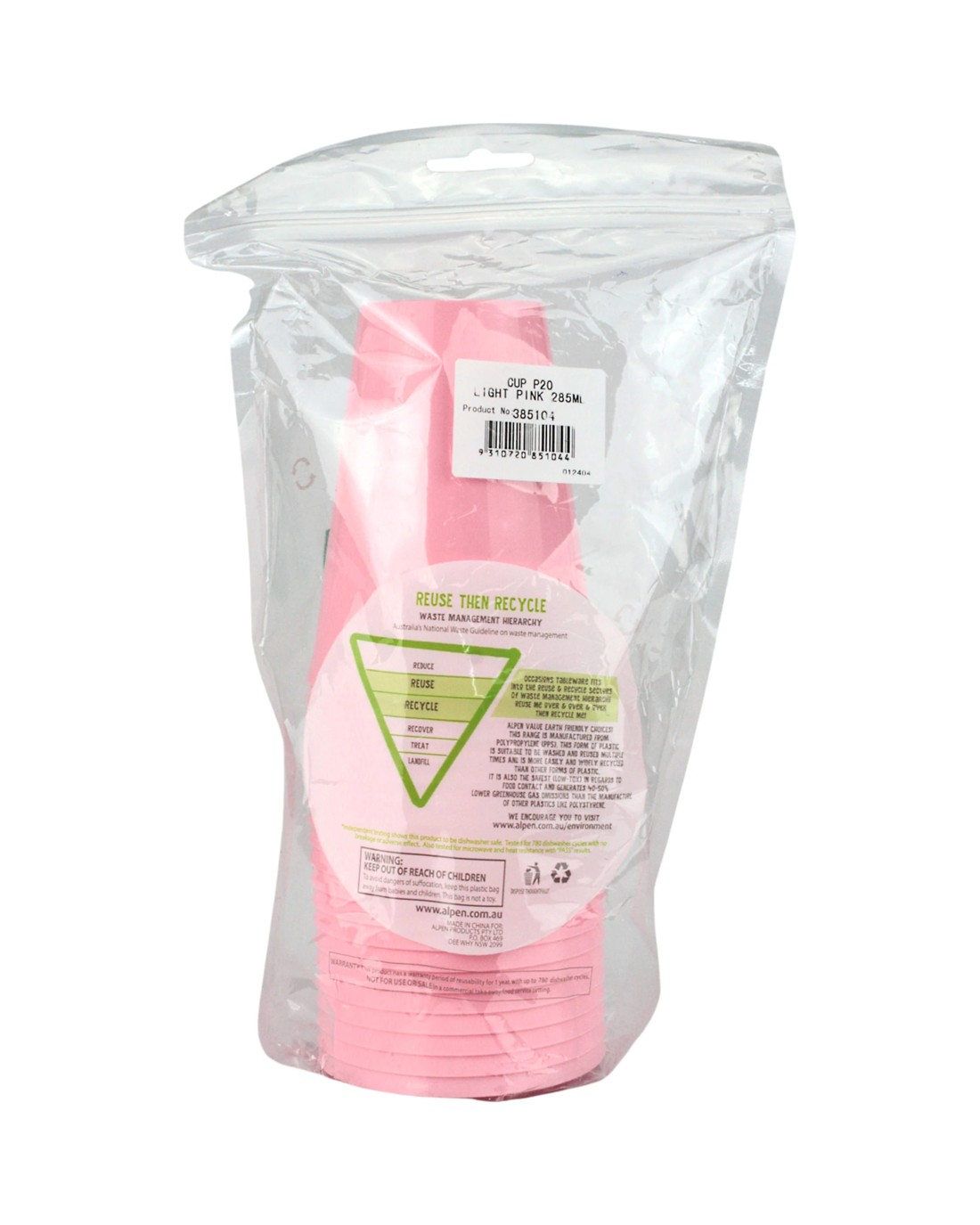 Alpen Reusable Cups 285ml Pack of 20 - Light Carnation Pink - Light Carnation Pink
