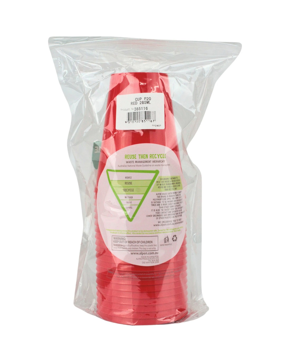 Sold by Discount Party SuppliesAlpen Reusable Cups 285ml Pack of 20 - Red - Red