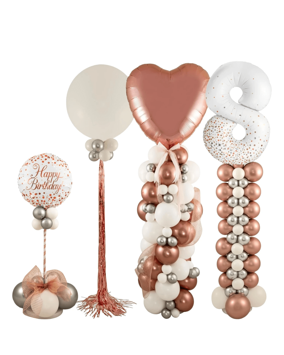 To add balloons down the telescopic pole, secure with balloon rings (sold separately)