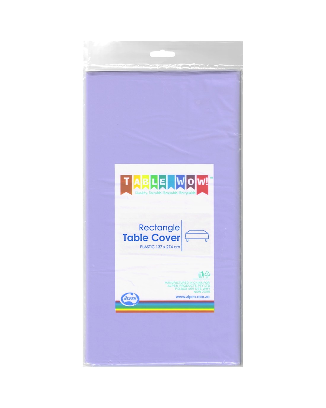 Sold by Discount Party SuppliesAlpePlastic Rectangular Tablecloth 137cm x 274cm Lavender - Lavender