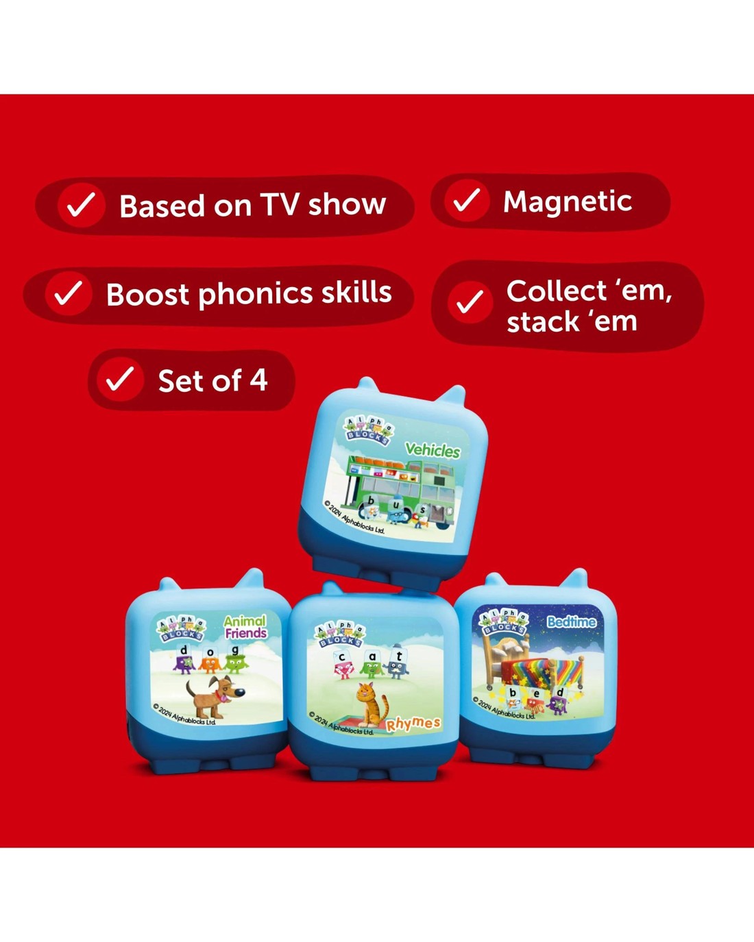 Ready for some fun with the Alphablocks? This is phonics made supersonic – All a little learner needs to do to join this letter-loving Alphaland crew, is pop one of these Clever Pocket Tonies on top of a Toniebox!Starring CBeebies favourite Alphablocks, and featuring some 'a-mazing' new magical adventures, this set of four Clever Pocket Tonies helps little ears recognise their letter sounds, master words and get the very best start on their learning journey. The show’s winning blend of fantastic stories, catchy songs and silly fun is the perfect way to introduce early years phonics sounds.