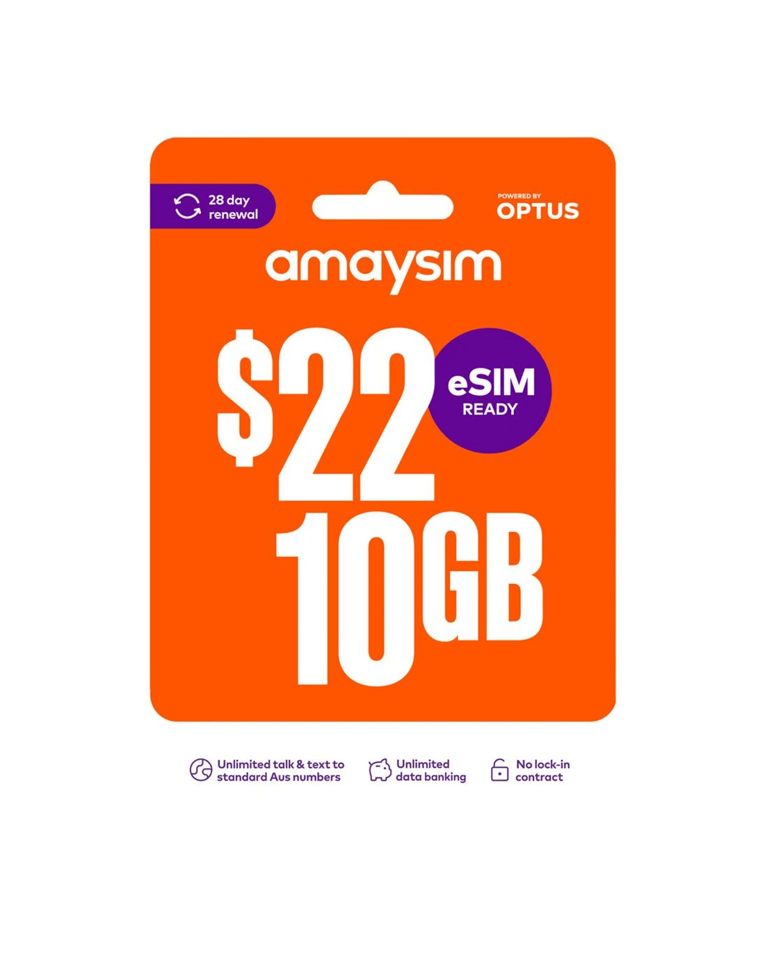 The amaysim Starter Pack is ideal for connecting to the 4G network to connect with friends, view media, and more. It provides unlimited standard talk and text in Australia, as well as 10GB of data.