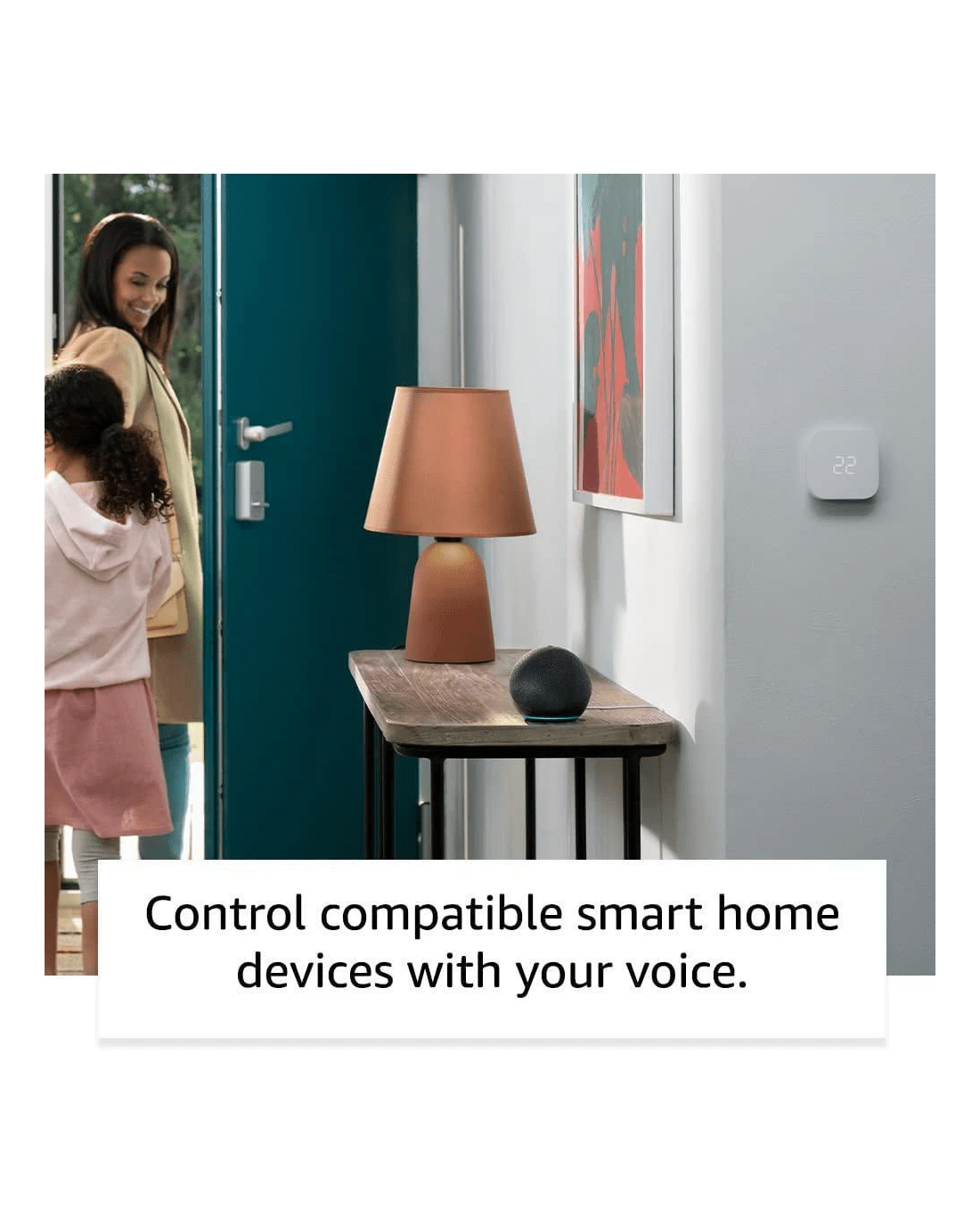 • Control compatible smart home devices with your voice and routines triggered by built-in motion or indoor temperature sensors.