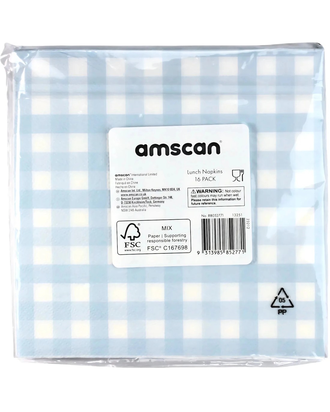 Sold by Discount Party SuppliesAmscan Gingham Large Napkins / Serviettes Pack of 16 - Pastel Blue - Pastel Blue, White
