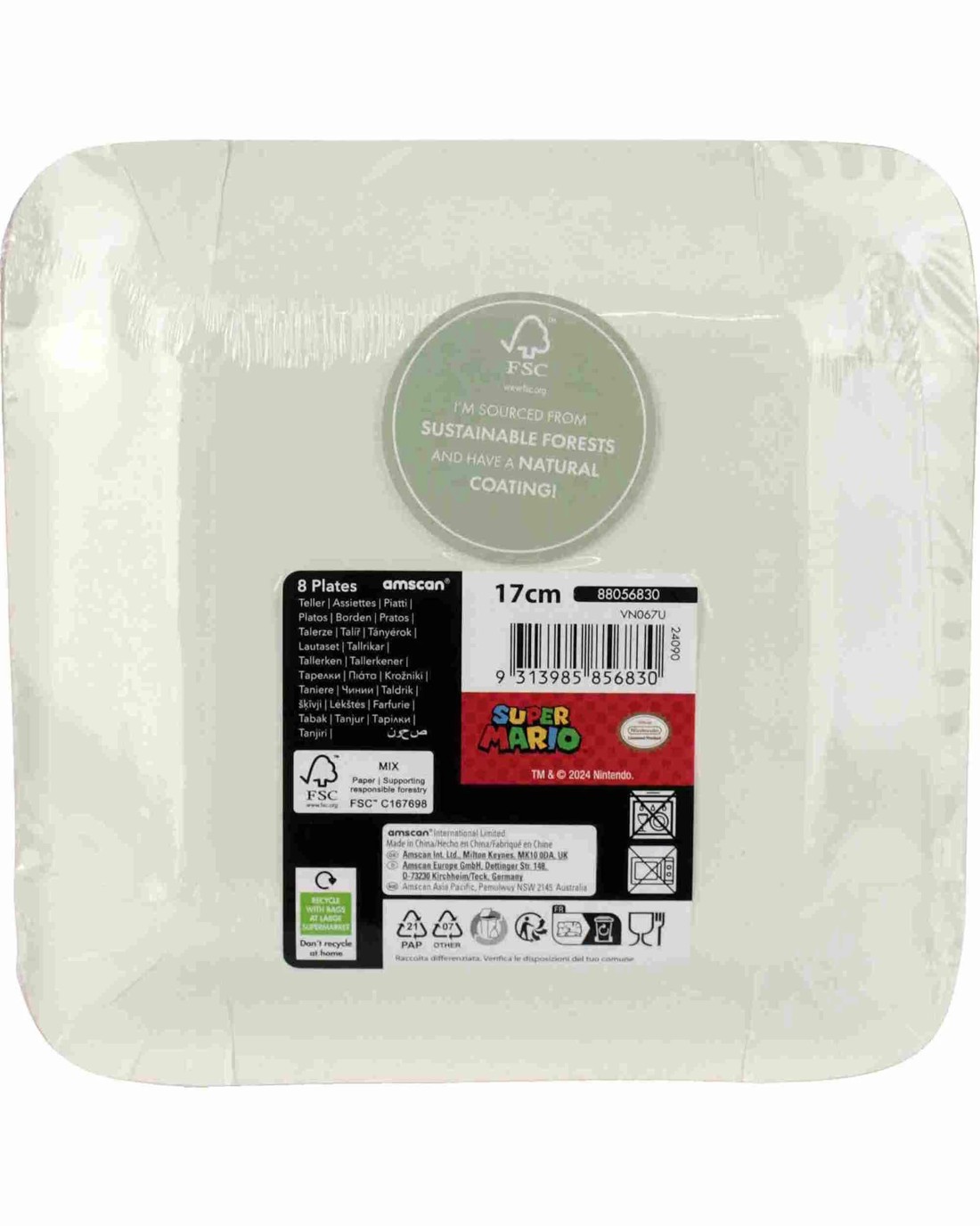 Amscan Super Mario Bros. Small Square Paper Plates Pack of 8