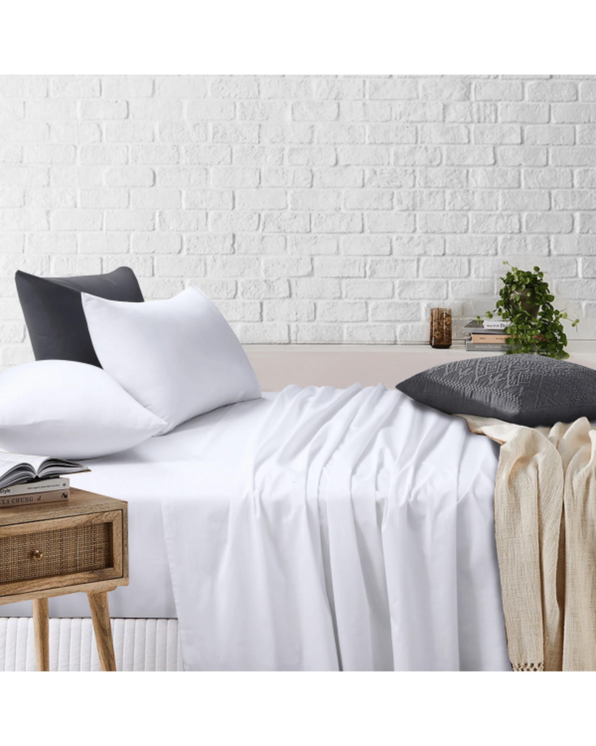 Amsons King Sheet Set - 180TC Cotton/Poly Fitted & Flat Sheets with Pillowcases, 40cm Deep (White) - White